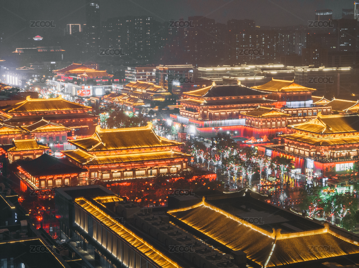 陕西,西安,城市,夜景,航拍,风景,风光,旅行,旅游,天际线