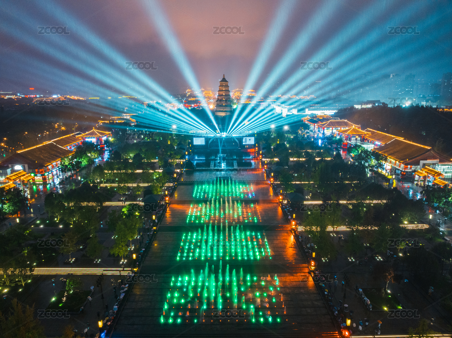 中国陕西西安大雁塔文化休闲景区夜景