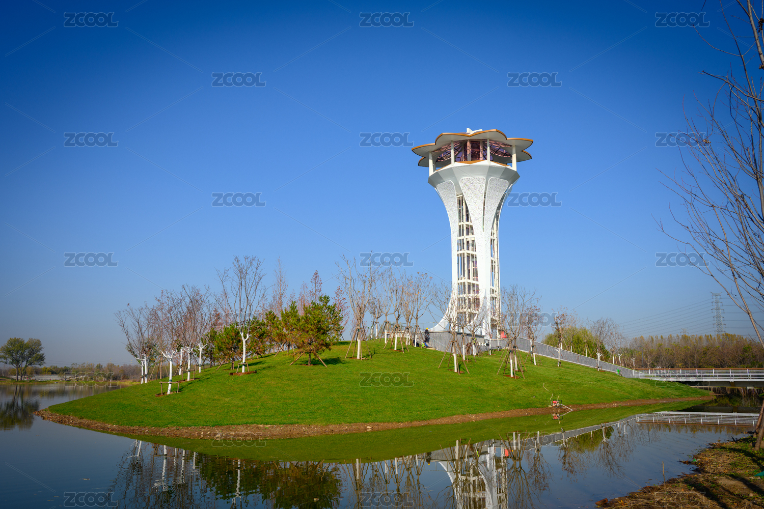 中国山西省长治市漳泽湖湿地公园,冬季景观