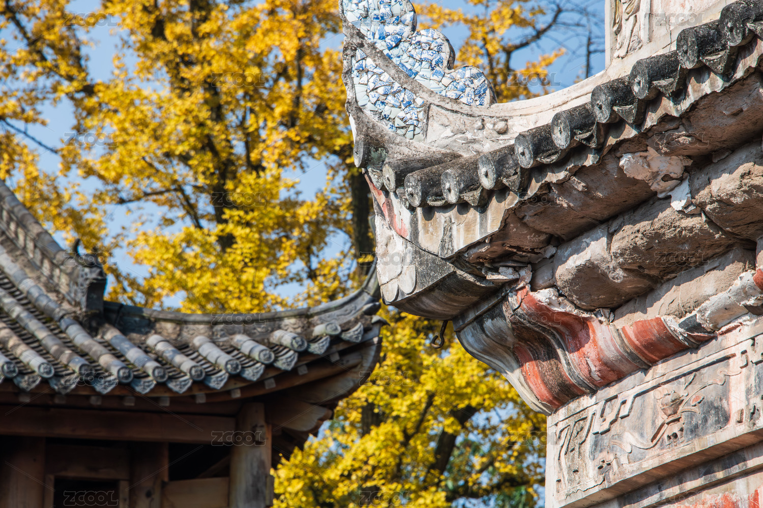 古建筑,银杏叶,塔楼,秋季,黄叶,蓝天,中式建筑,屋顶,寺庙,真如寺