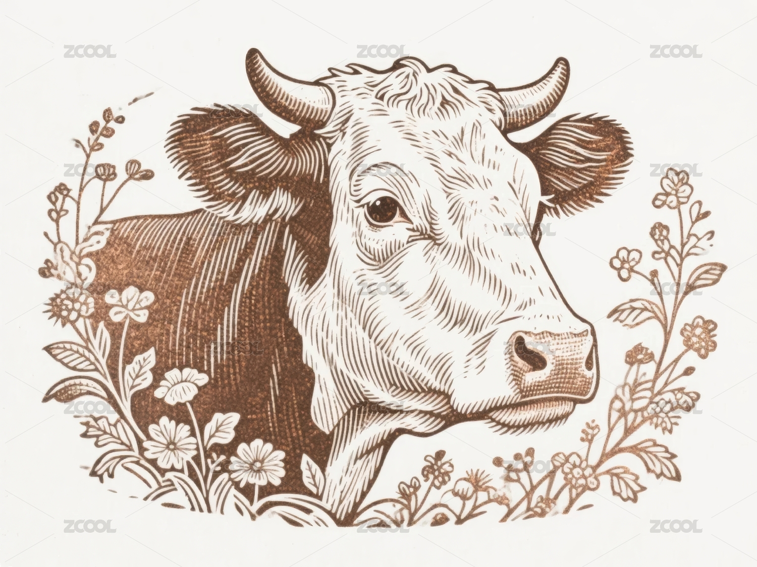 牛头,插画,矢量,动物,艺术画,卡通,白色,简约,生物,动物插画