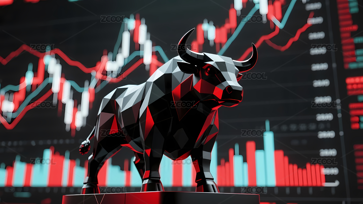 金牛雕像金属感股市场景