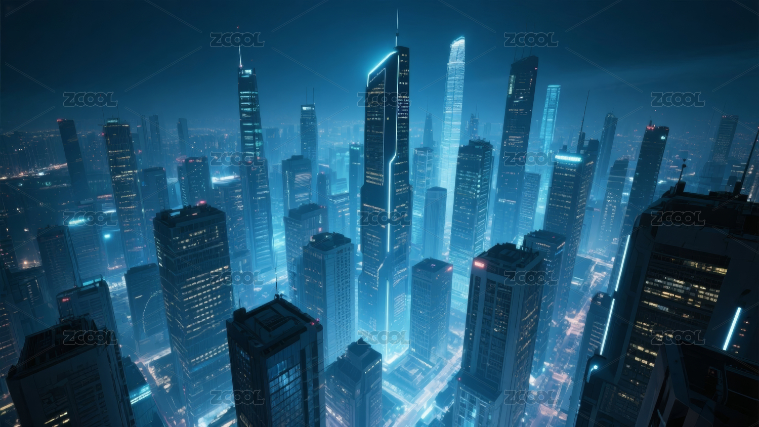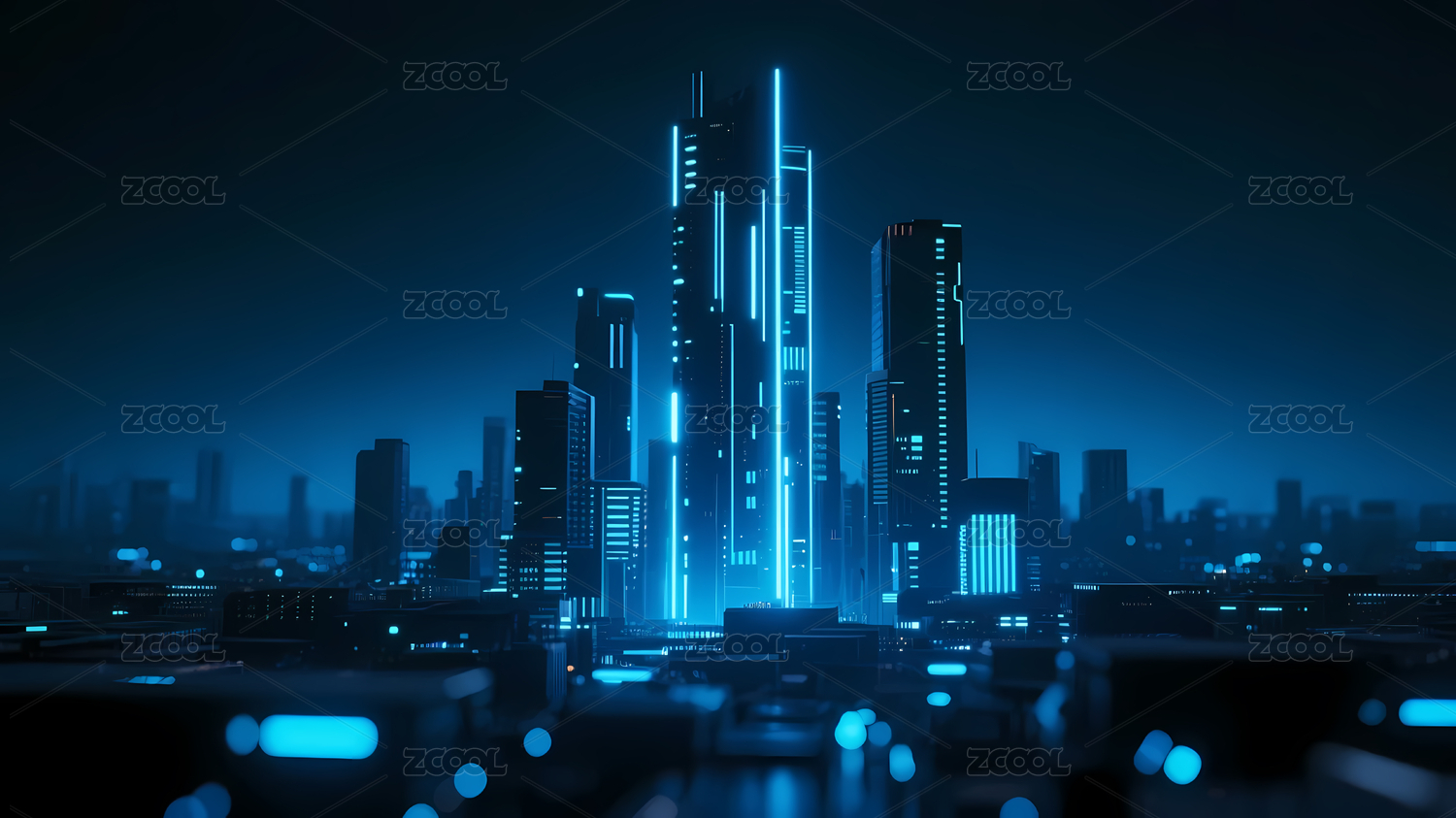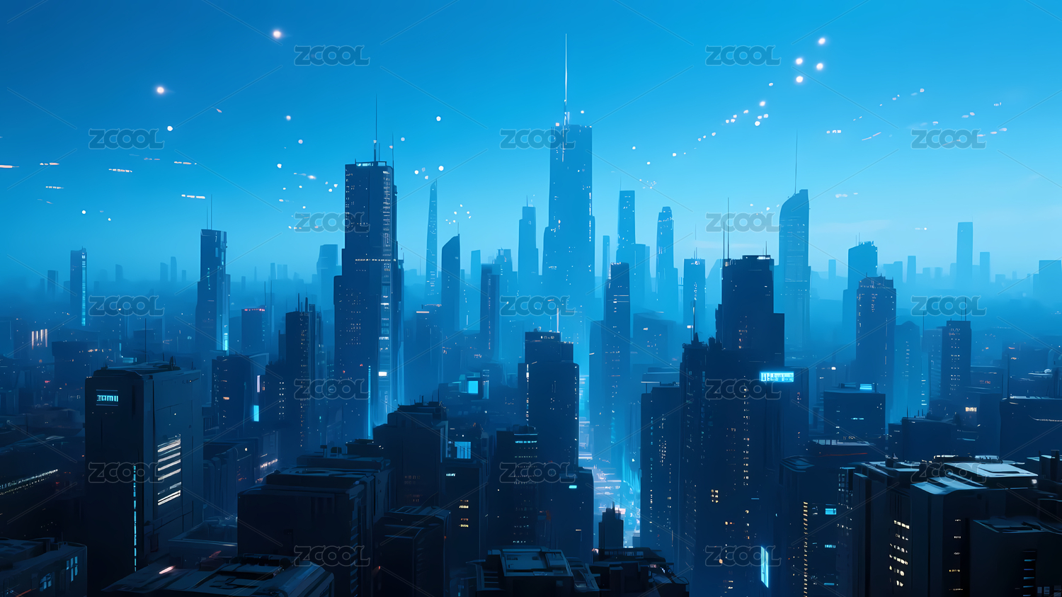 深蓝,光影,紫色,宁静,神秘,夜幕,摩天楼,熠熠,城市,高耸