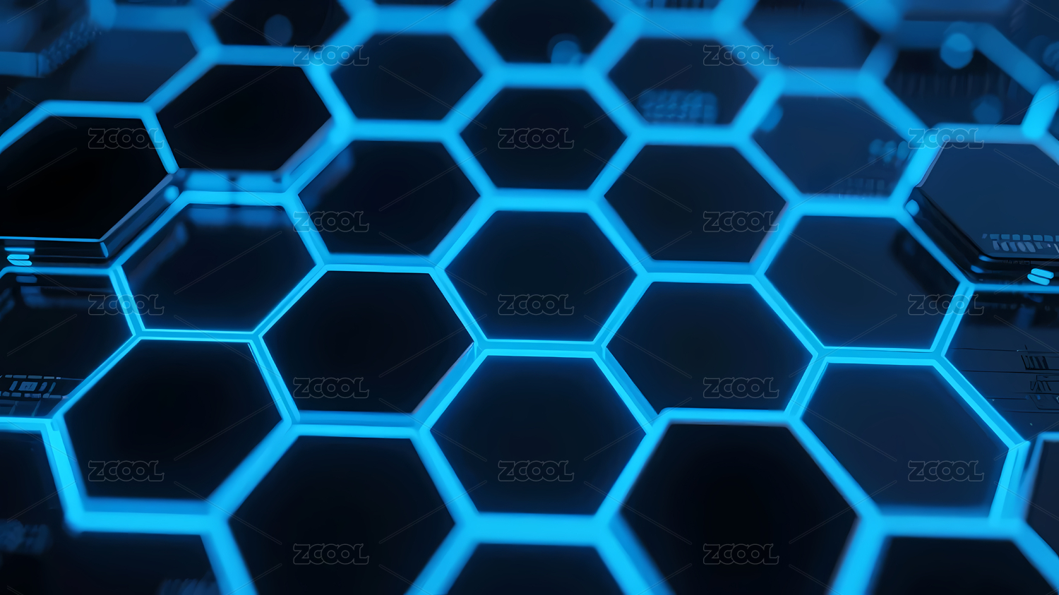 蓝色发光蜂窝科技图案