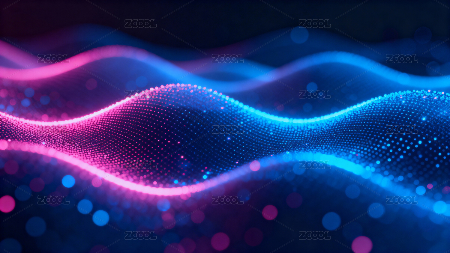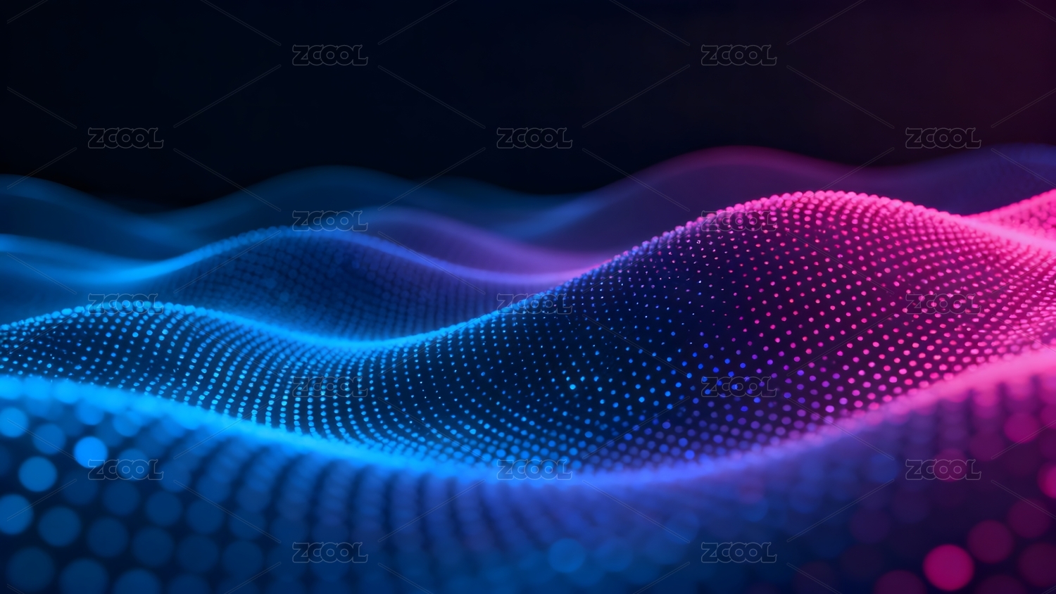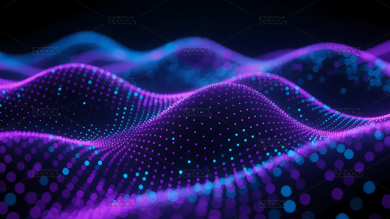 蓝紫波浪点阵展现动态科技感