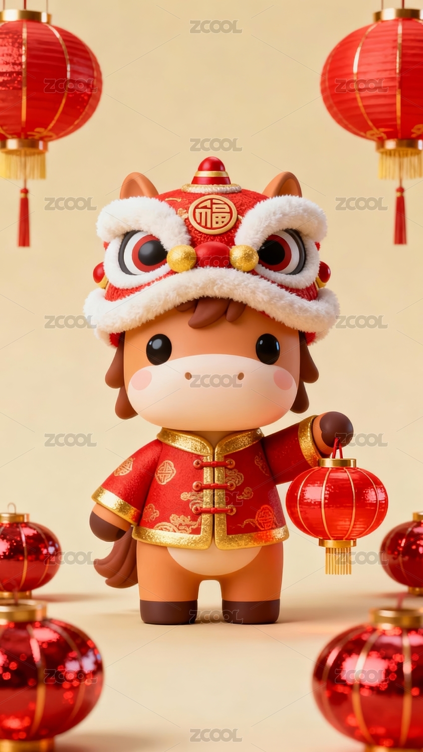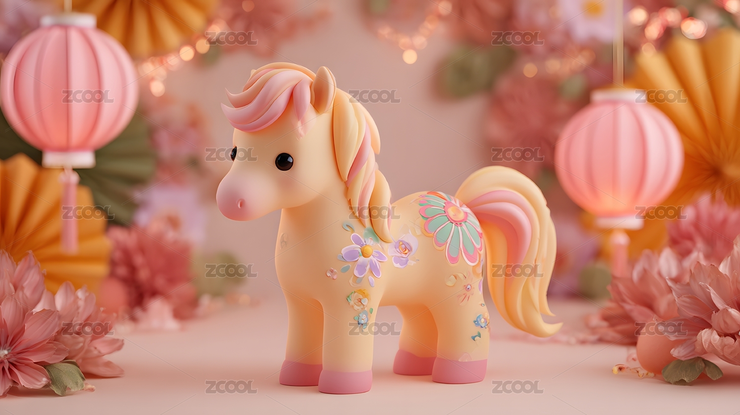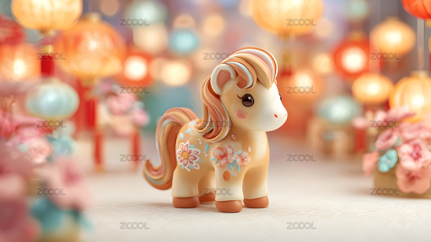 可爱小马 喜庆灯笼 朦胧唯美氛围