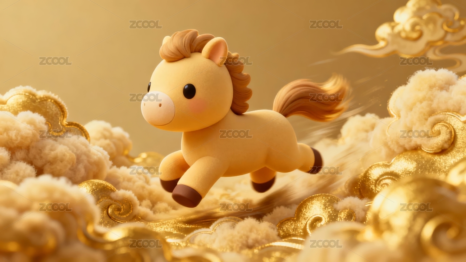金色云朵上的小马