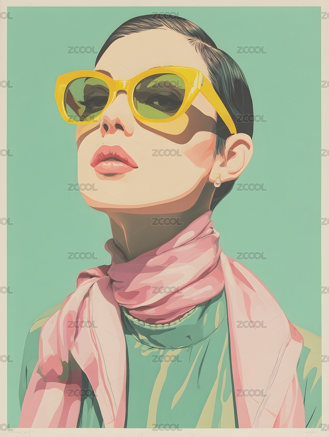 极简插画戴墨镜的女孩