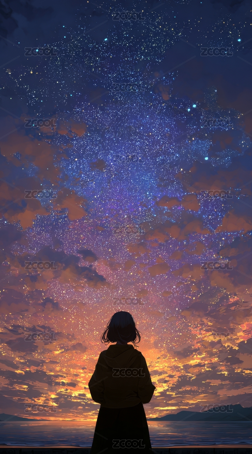 窗户,室内,氛围,灯光,城市,夜景,静谧,木制,星空,插画