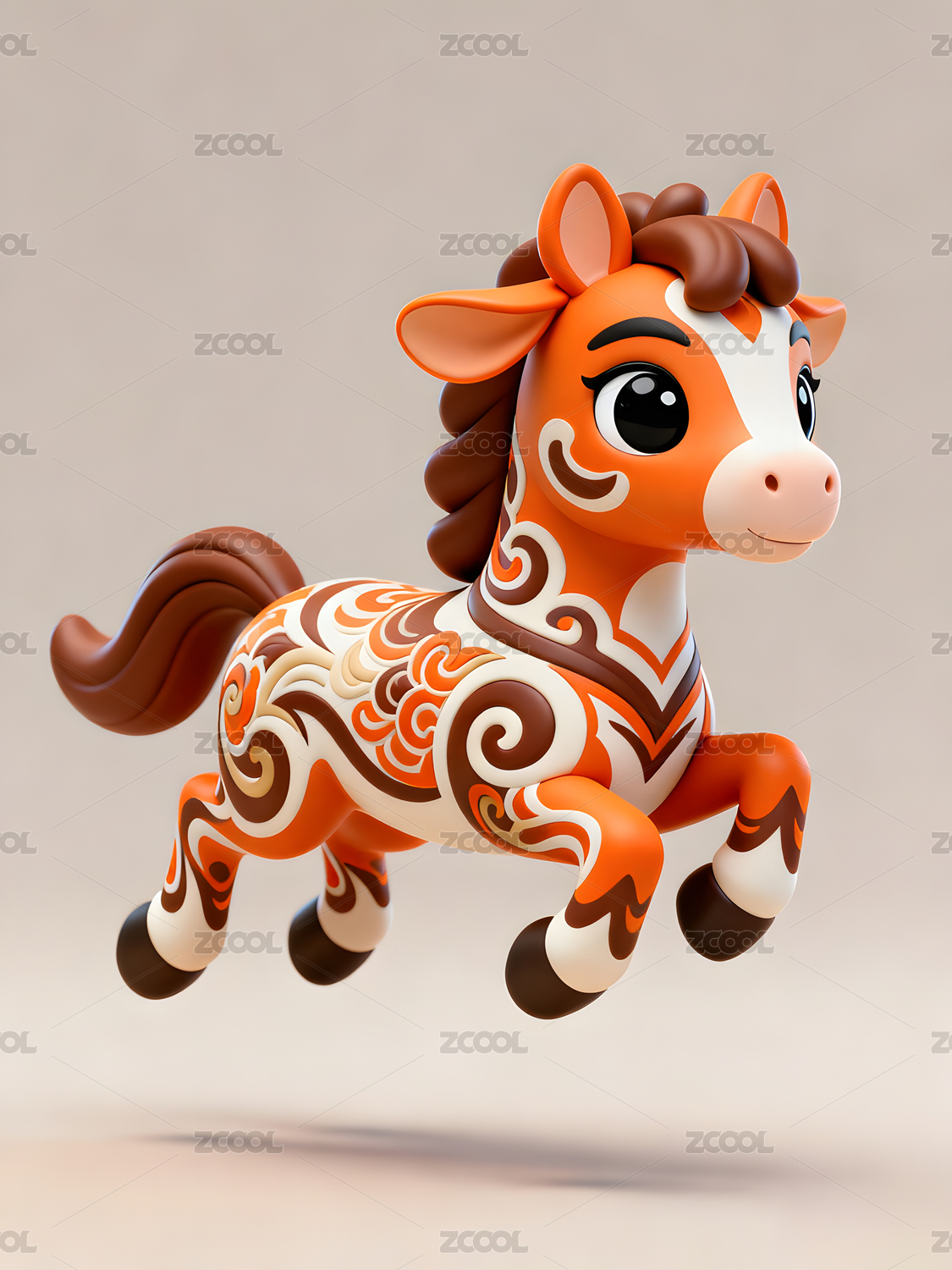 3D,立体,中国风,传统,纹理,花纹,纹样,马,马年,形象