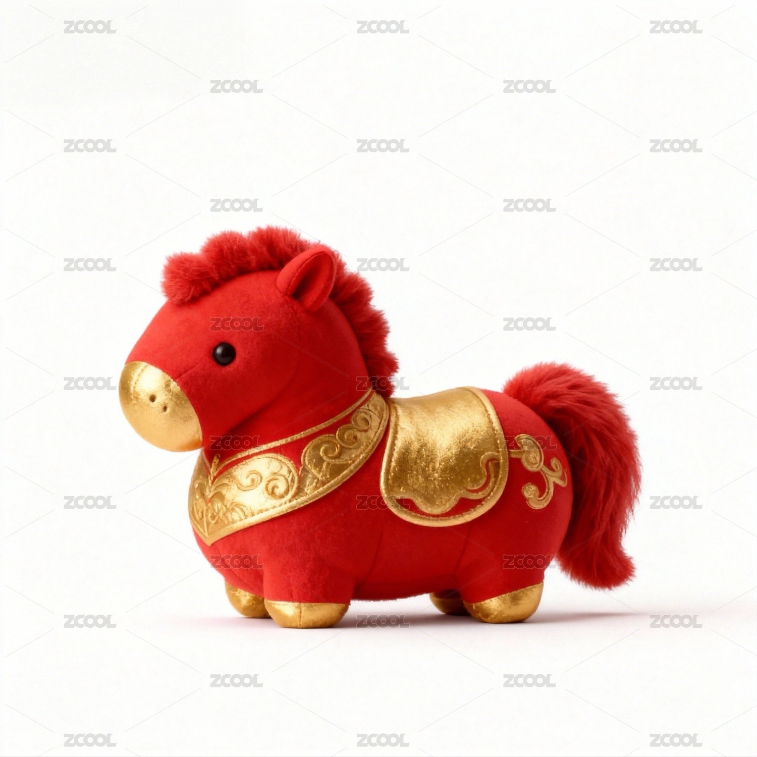 3d可爱毛绒质感春节喜庆小马IP手办玩偶