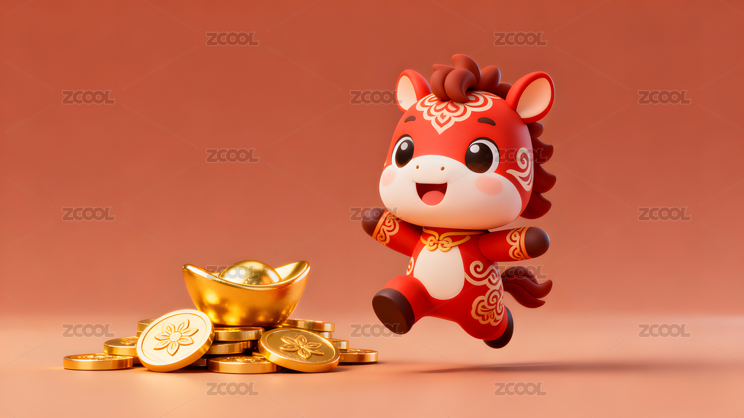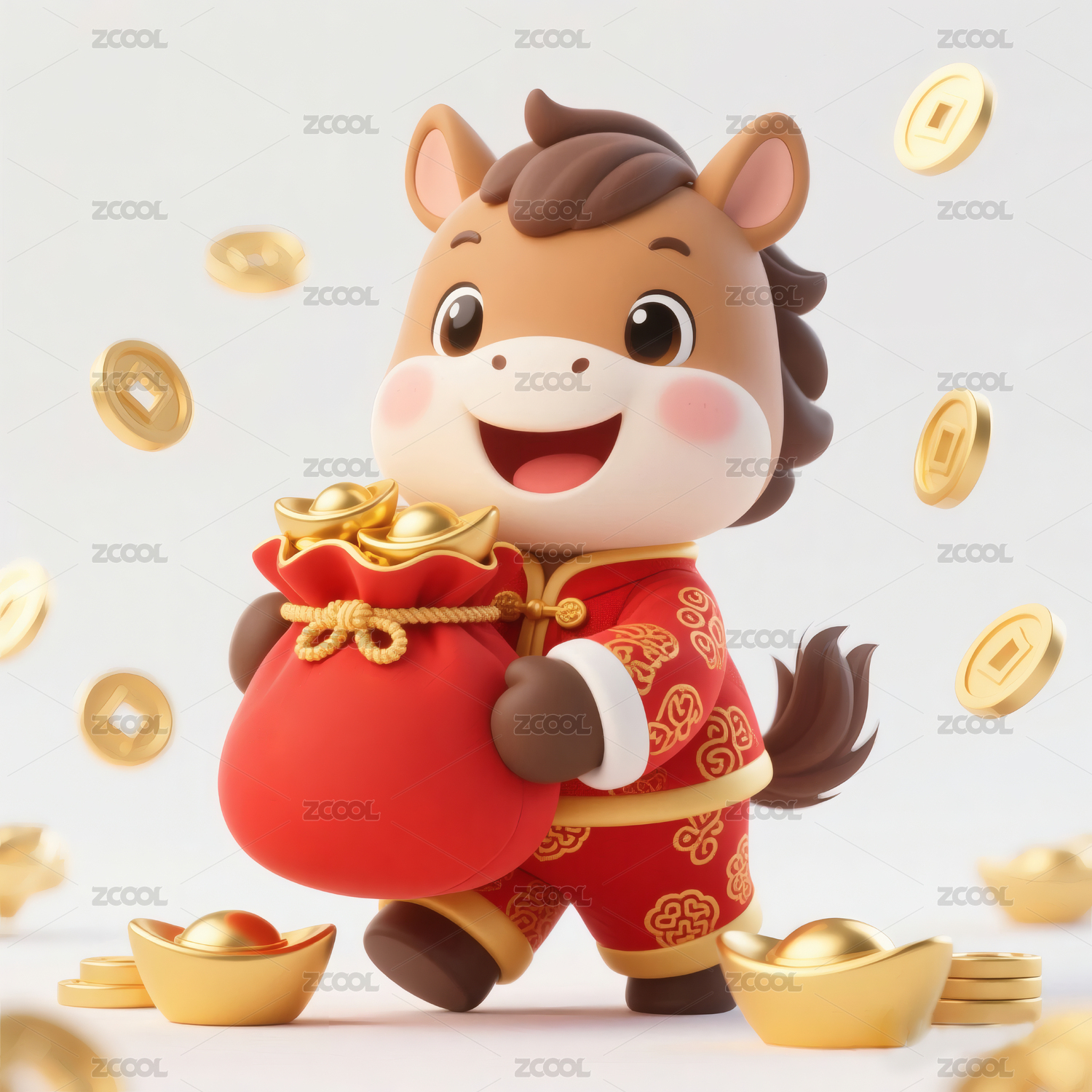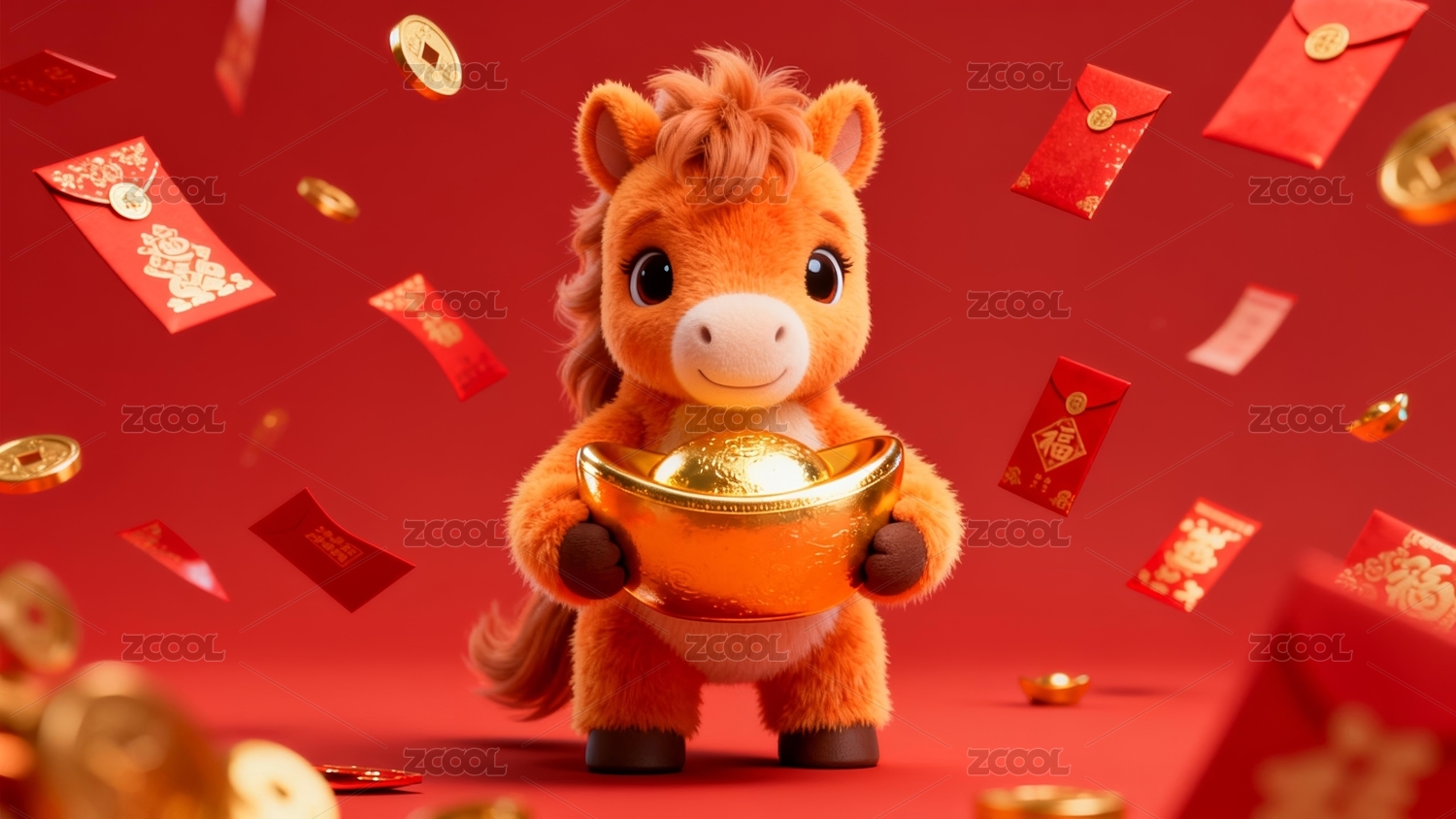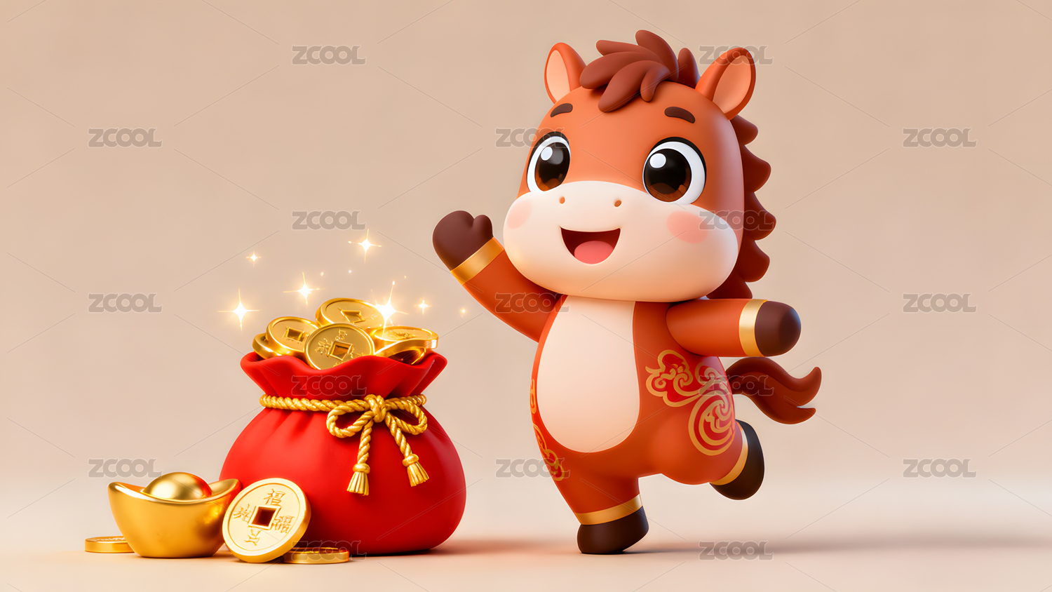 3D,立体,可爱,马,动物,生肖,属相,马年,家畜,财气