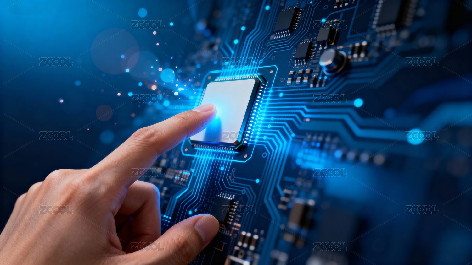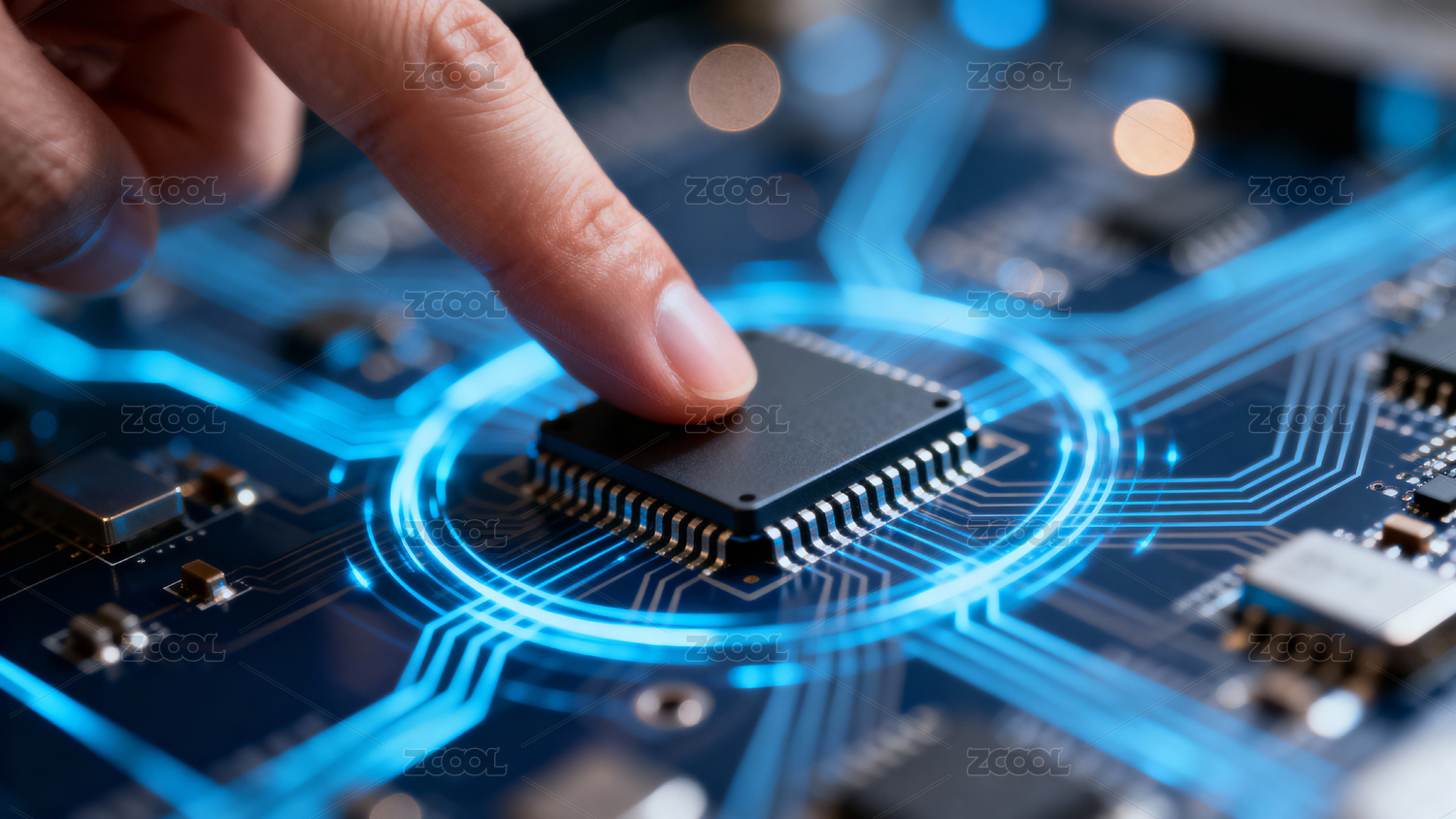 手指触碰电路板科技感十足