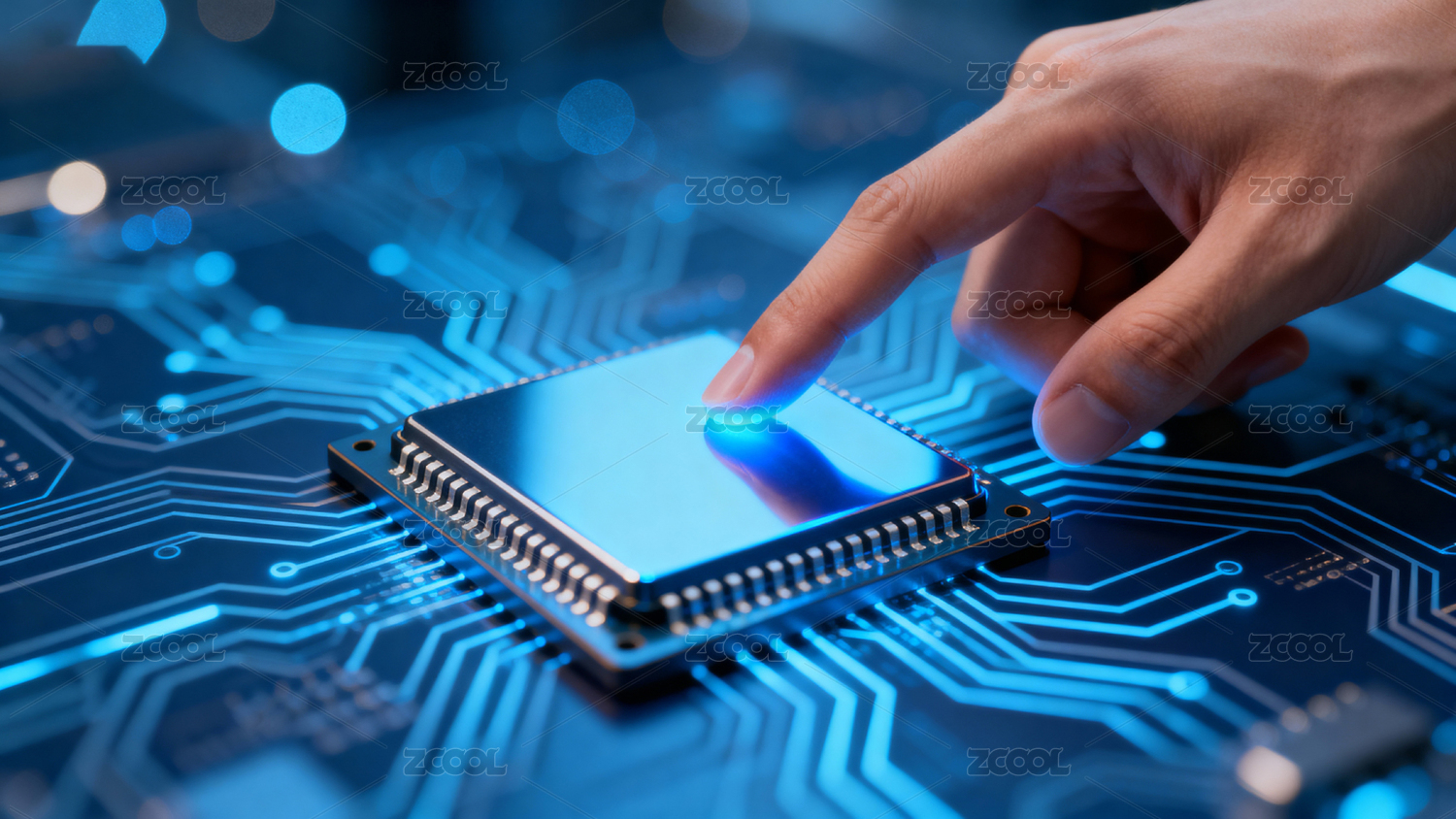 手指触碰发光芯片科技感十足