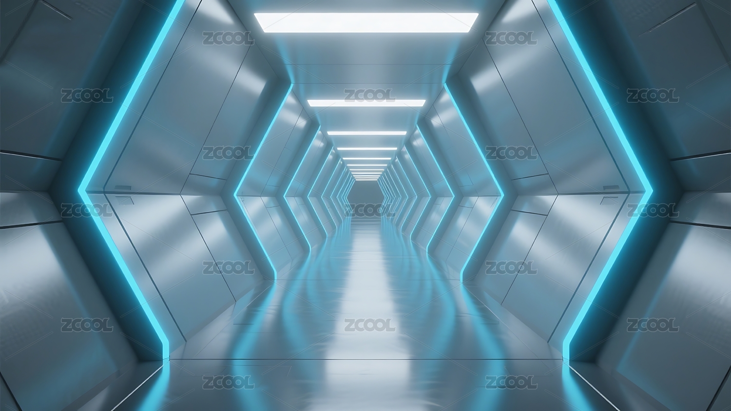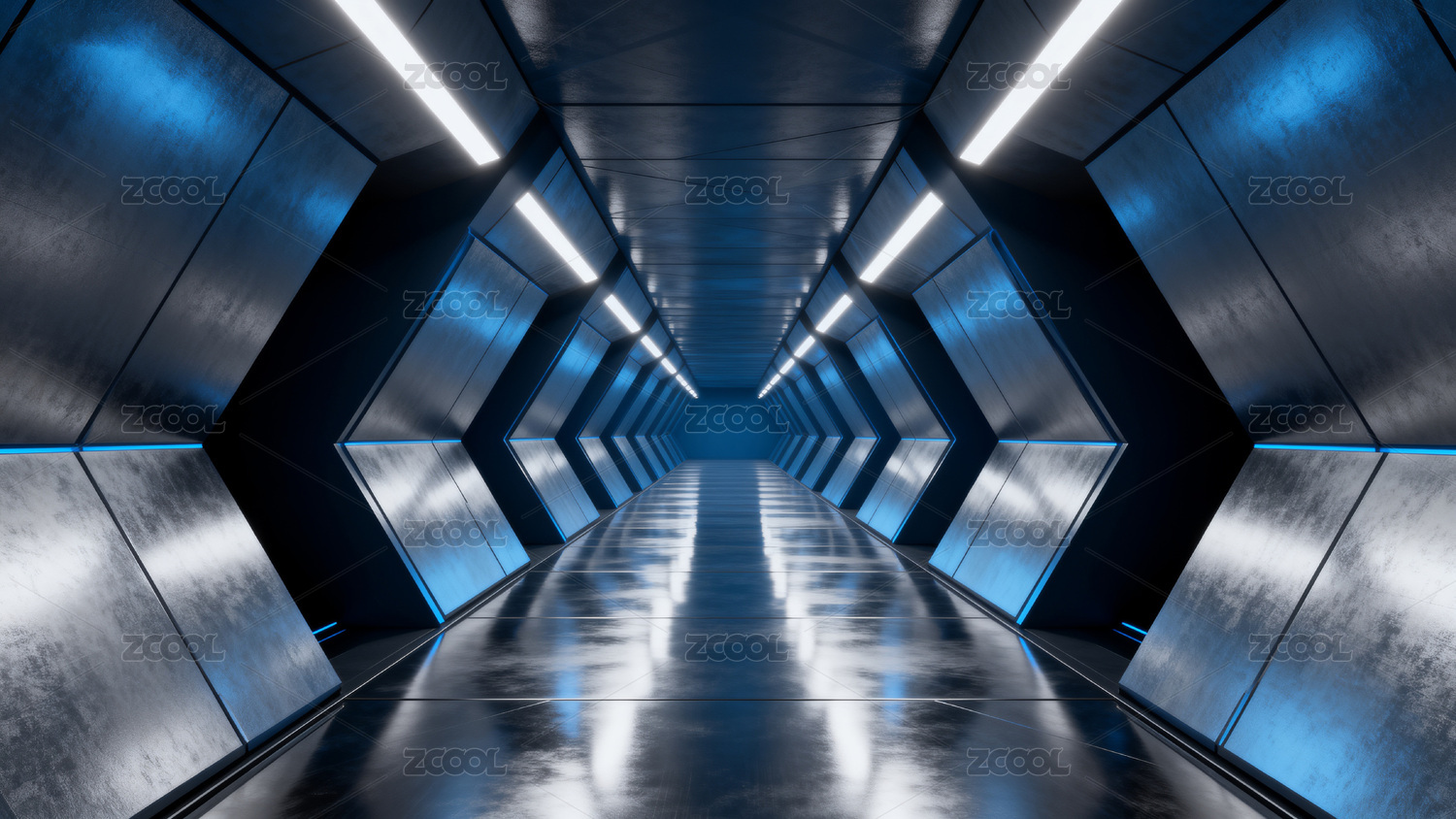 科幻风格蓝色走廊空间
