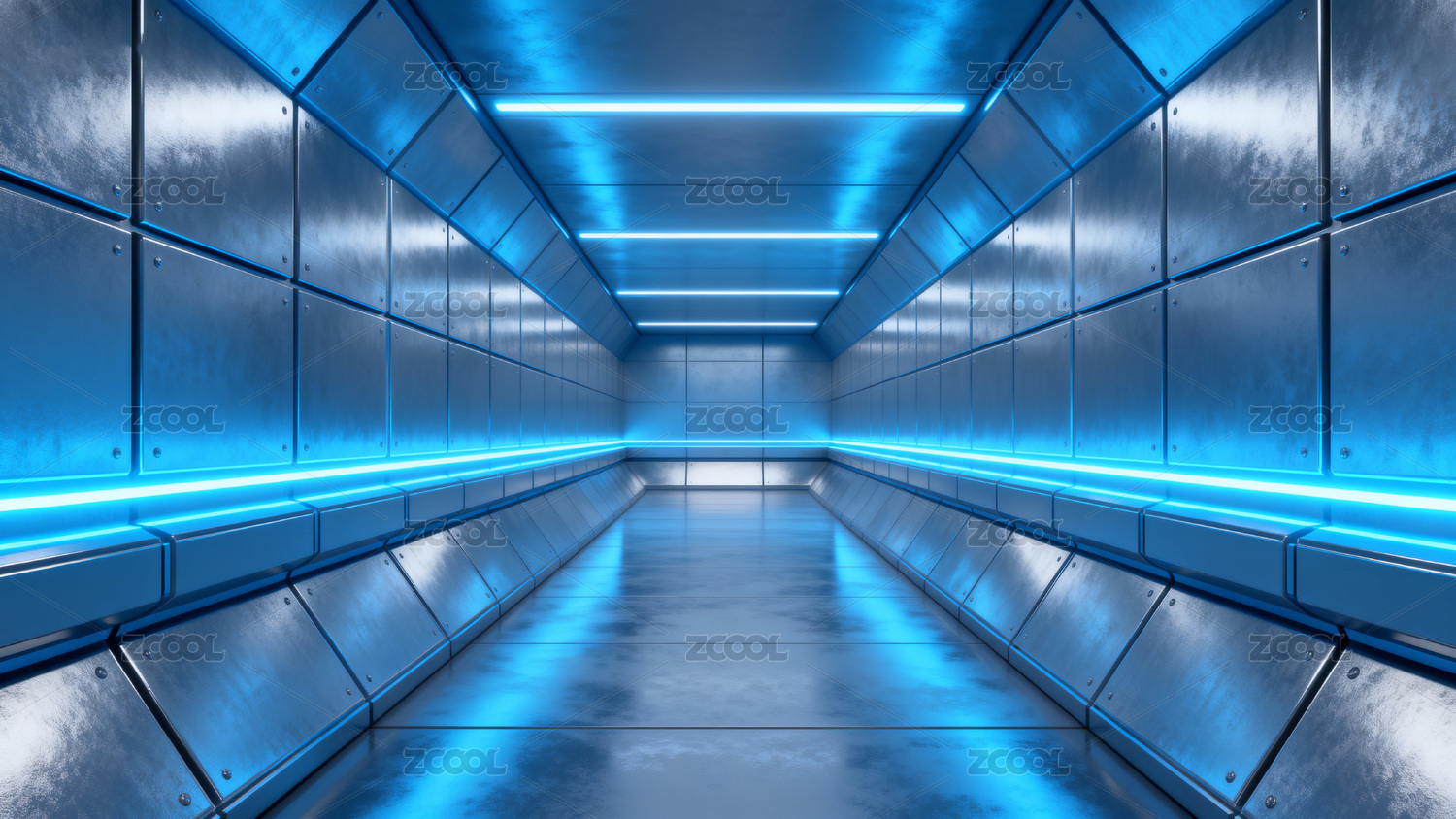 科幻蓝色走廊灯光