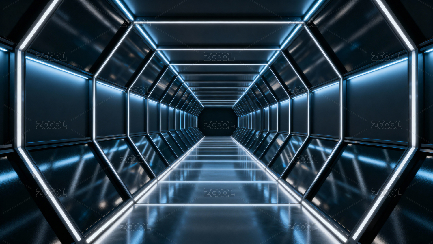 科幻蓝色走廊光影效果