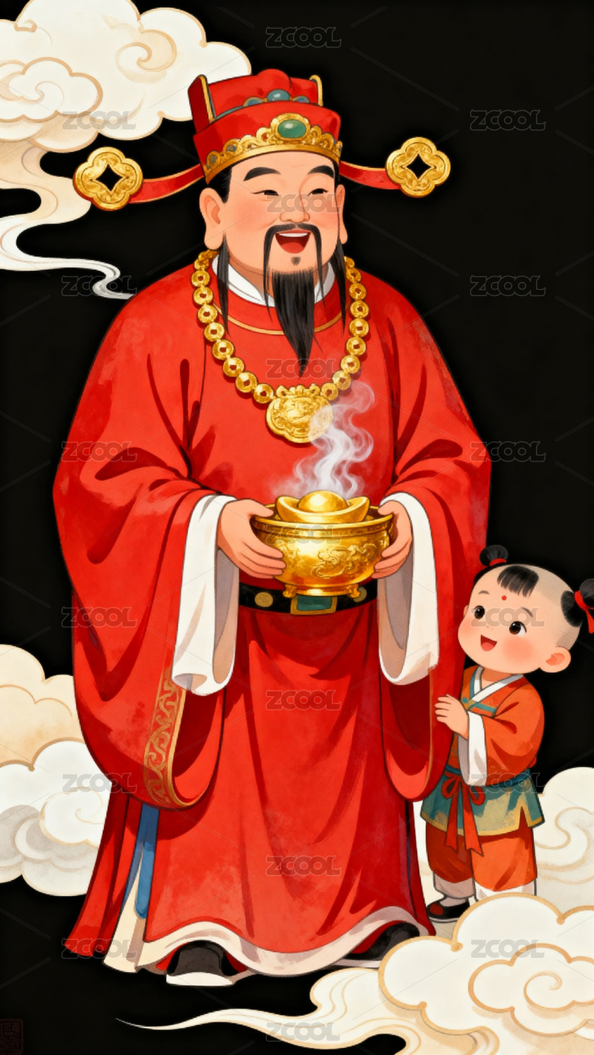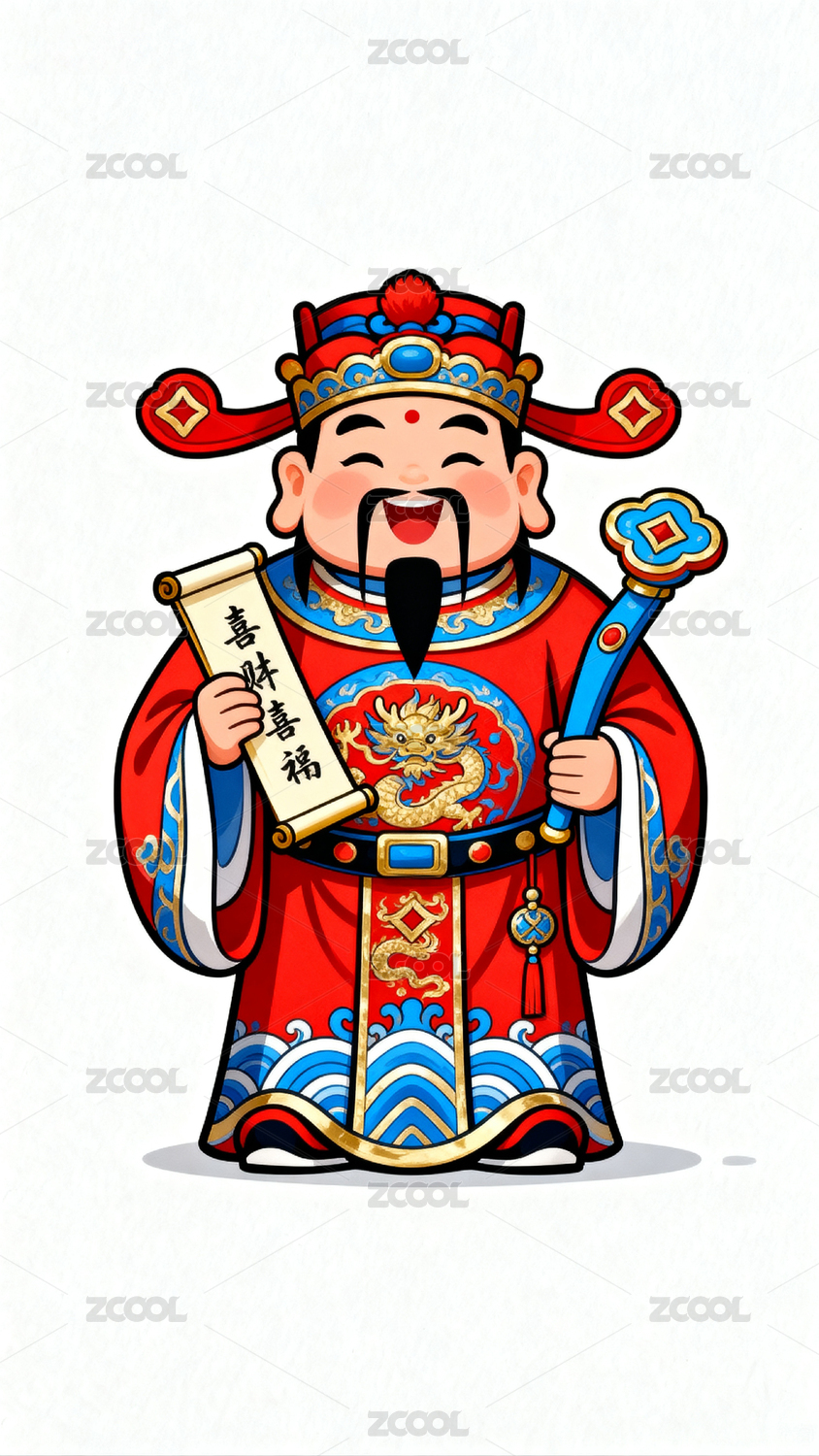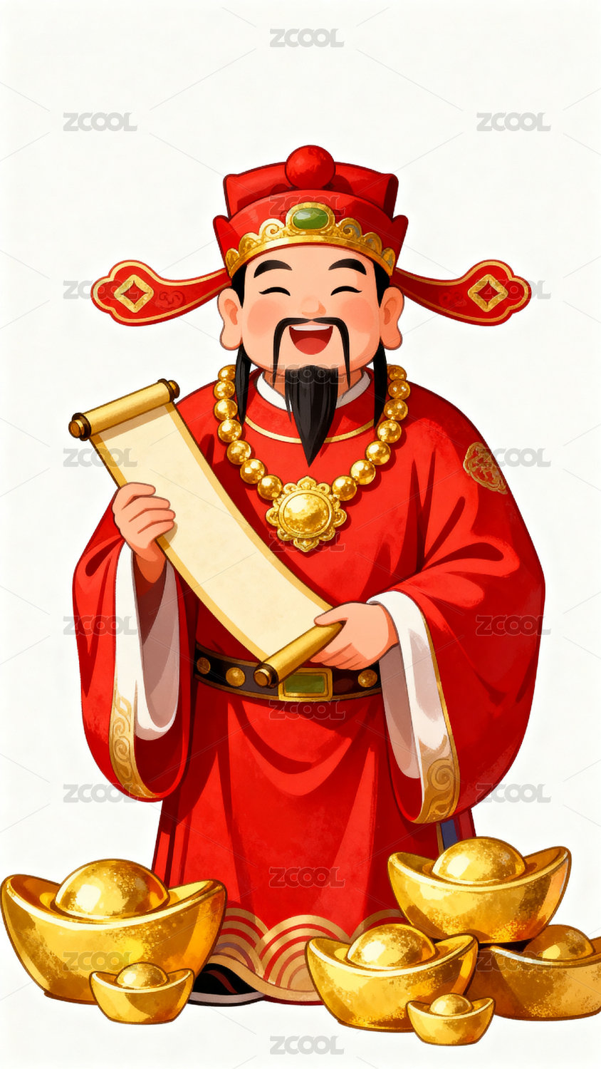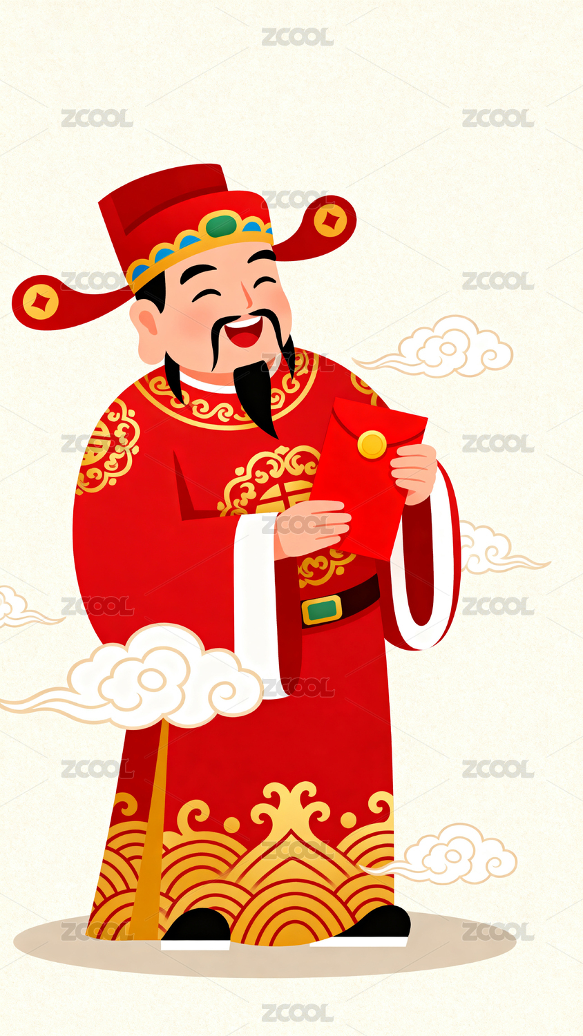 背景,设计,细节,红色,财神,胡须,帽子,服饰,装饰,金色