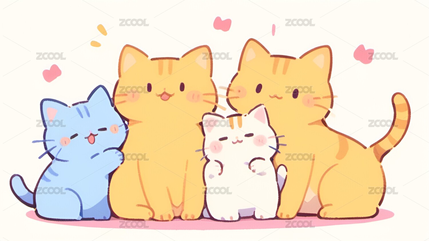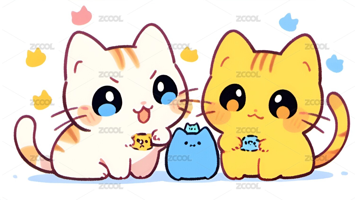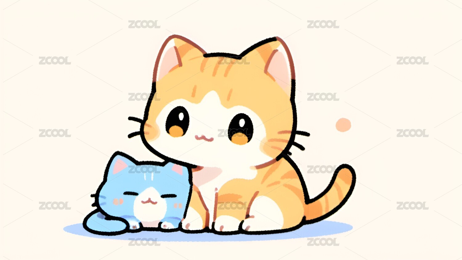 卡通,小猫,猫,可爱,动物,宠物,漫画,动漫,插画,壁纸