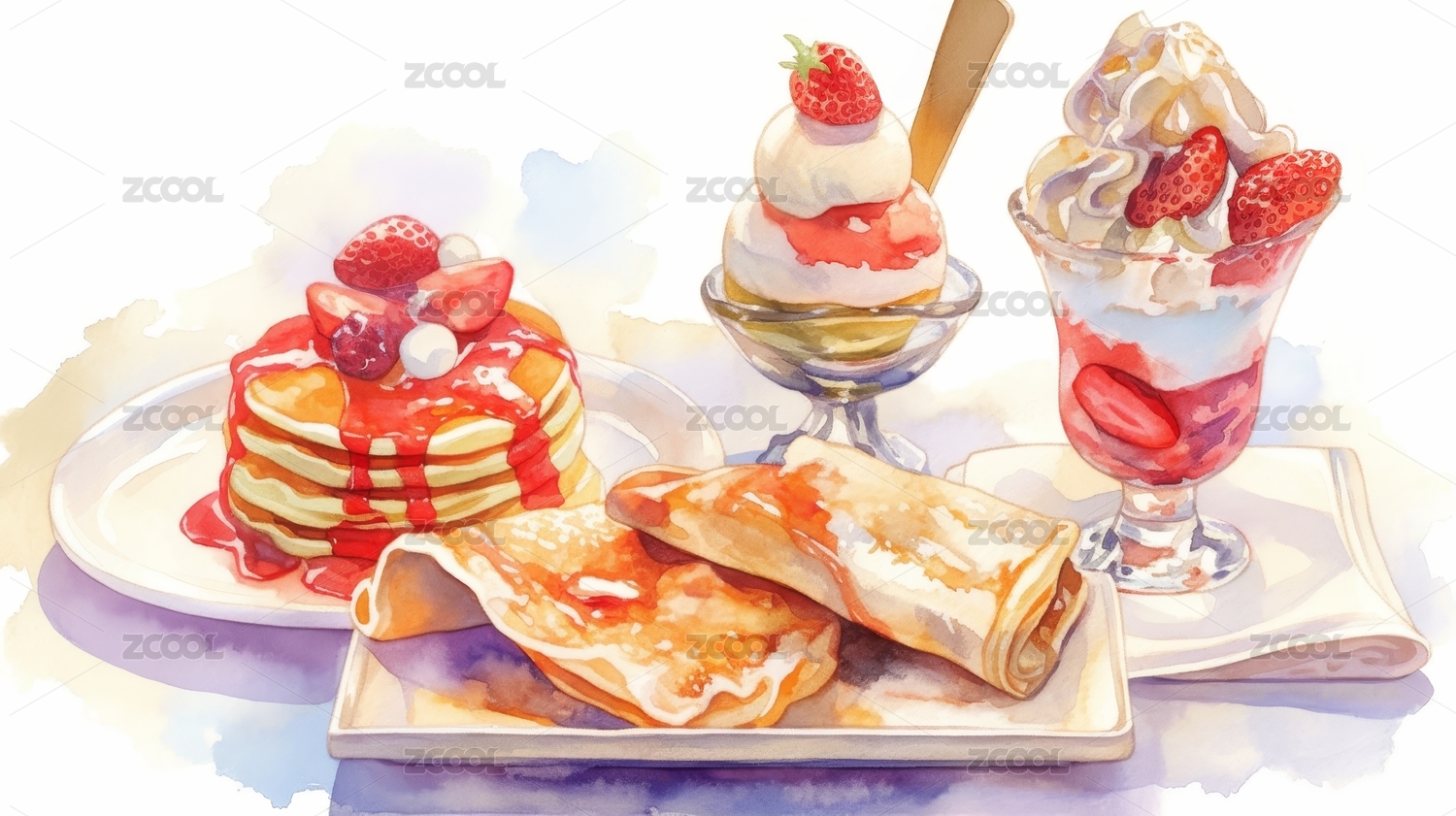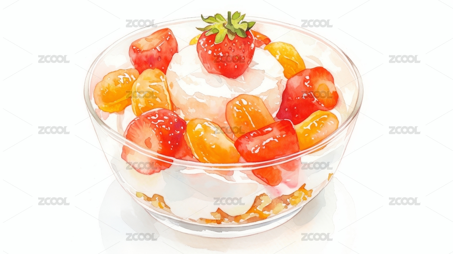 桌面盘中碗中冰激凌球火炬冰激淋插画绘画