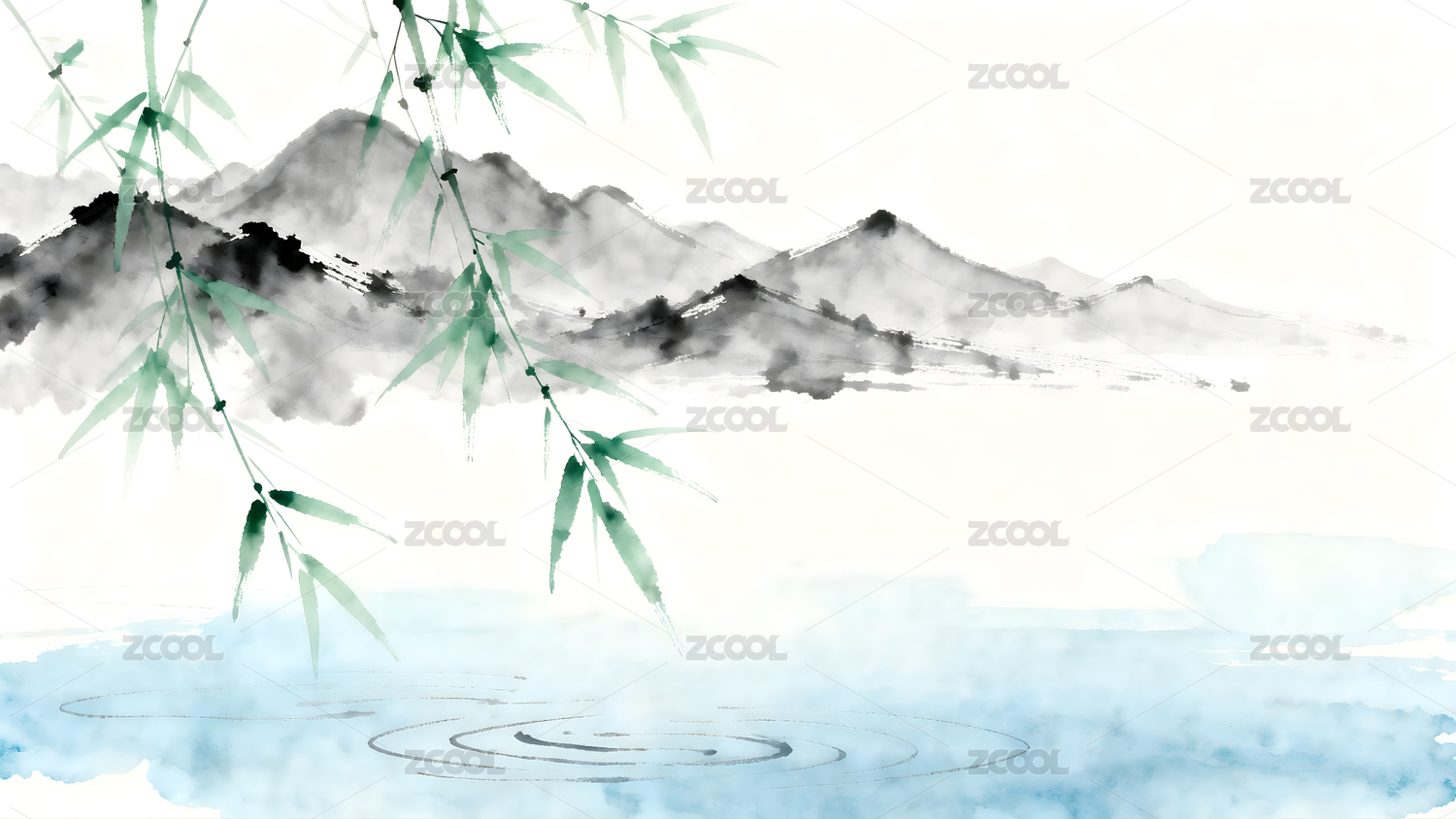 青山绿水水墨画意境