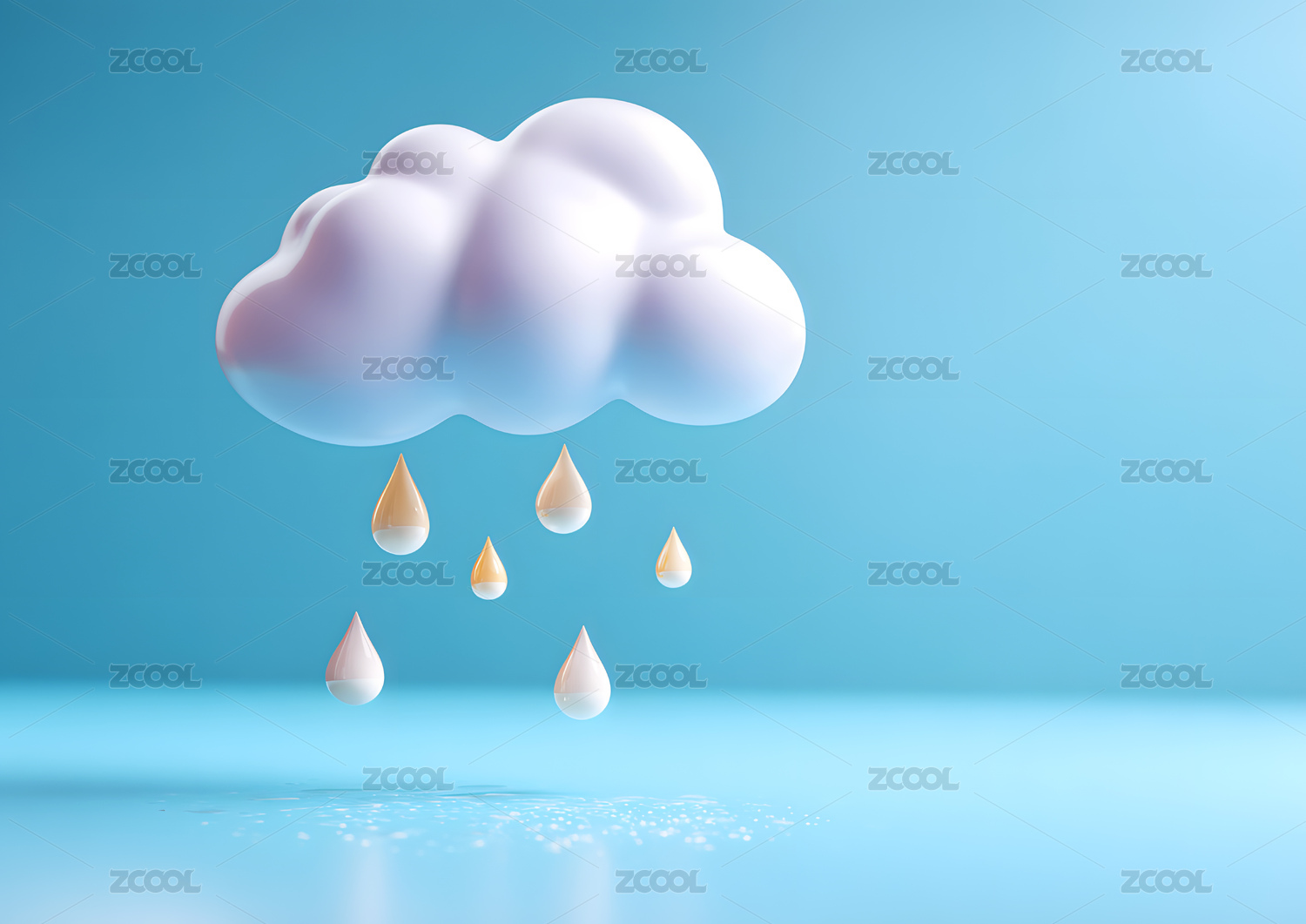 蓝背景云朵雨滴画面