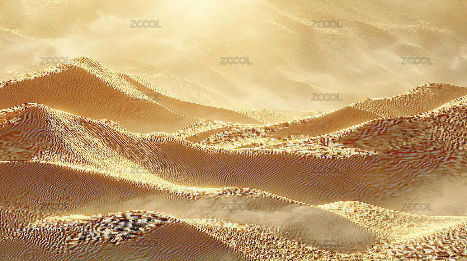 金色沙漠沙丘纹理伴随尘土的电影感场景