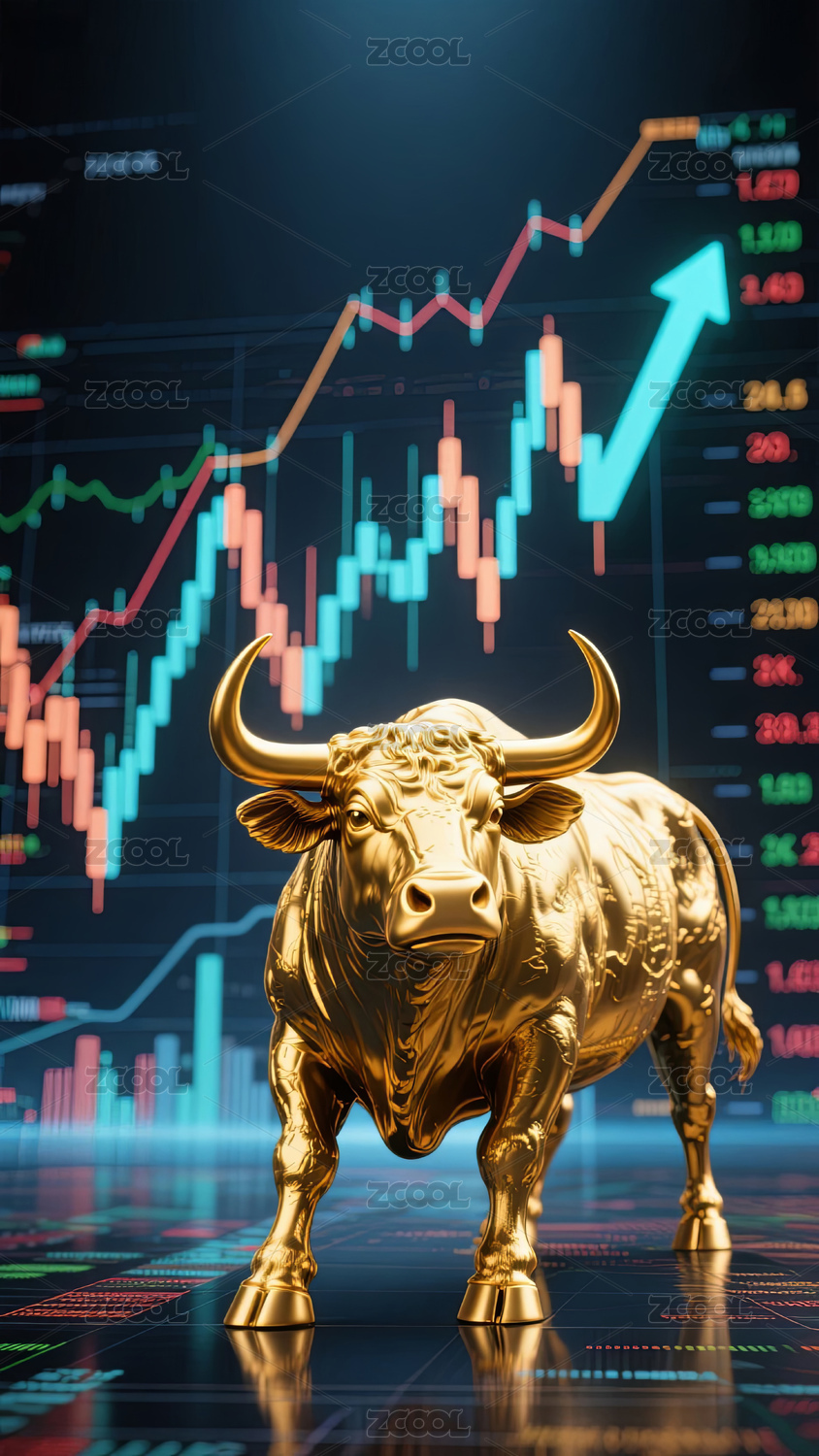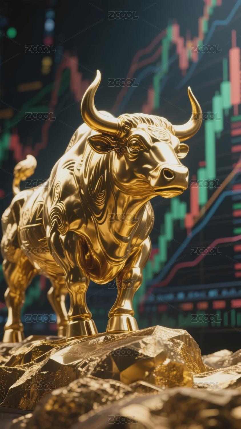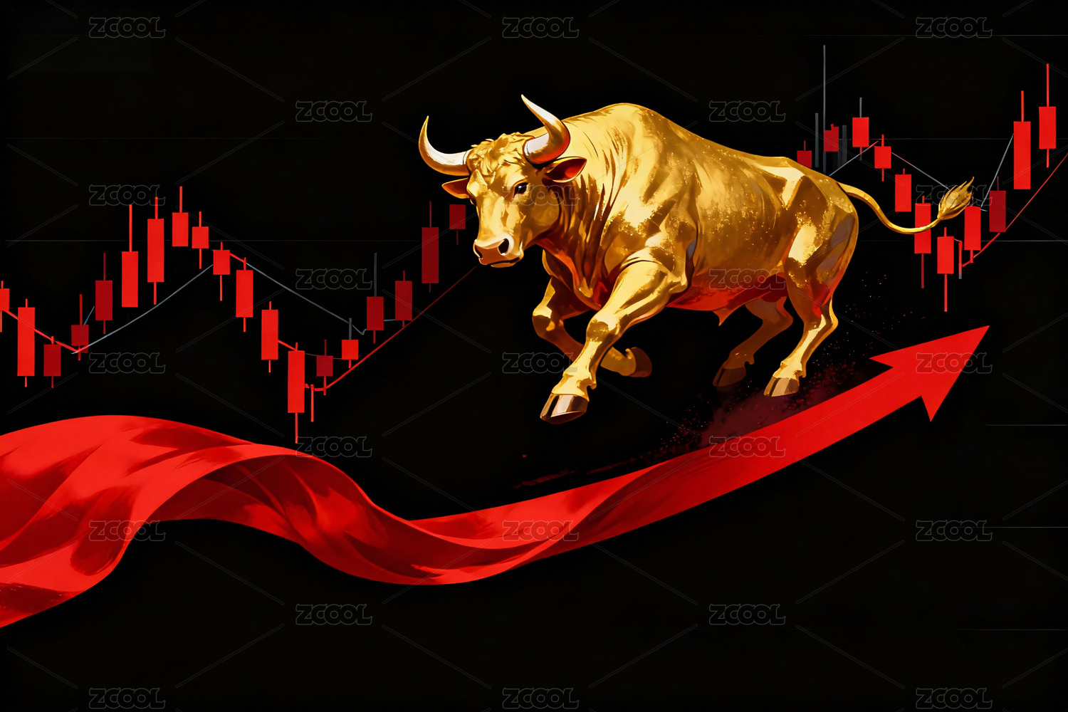 牛市,金色,公牛,上涨,金融,背景,红色,箭头,K线图,趋势
