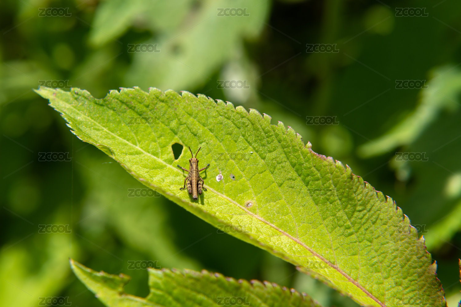 蚂蚁在绿色植物枝干上爬行的微距画面