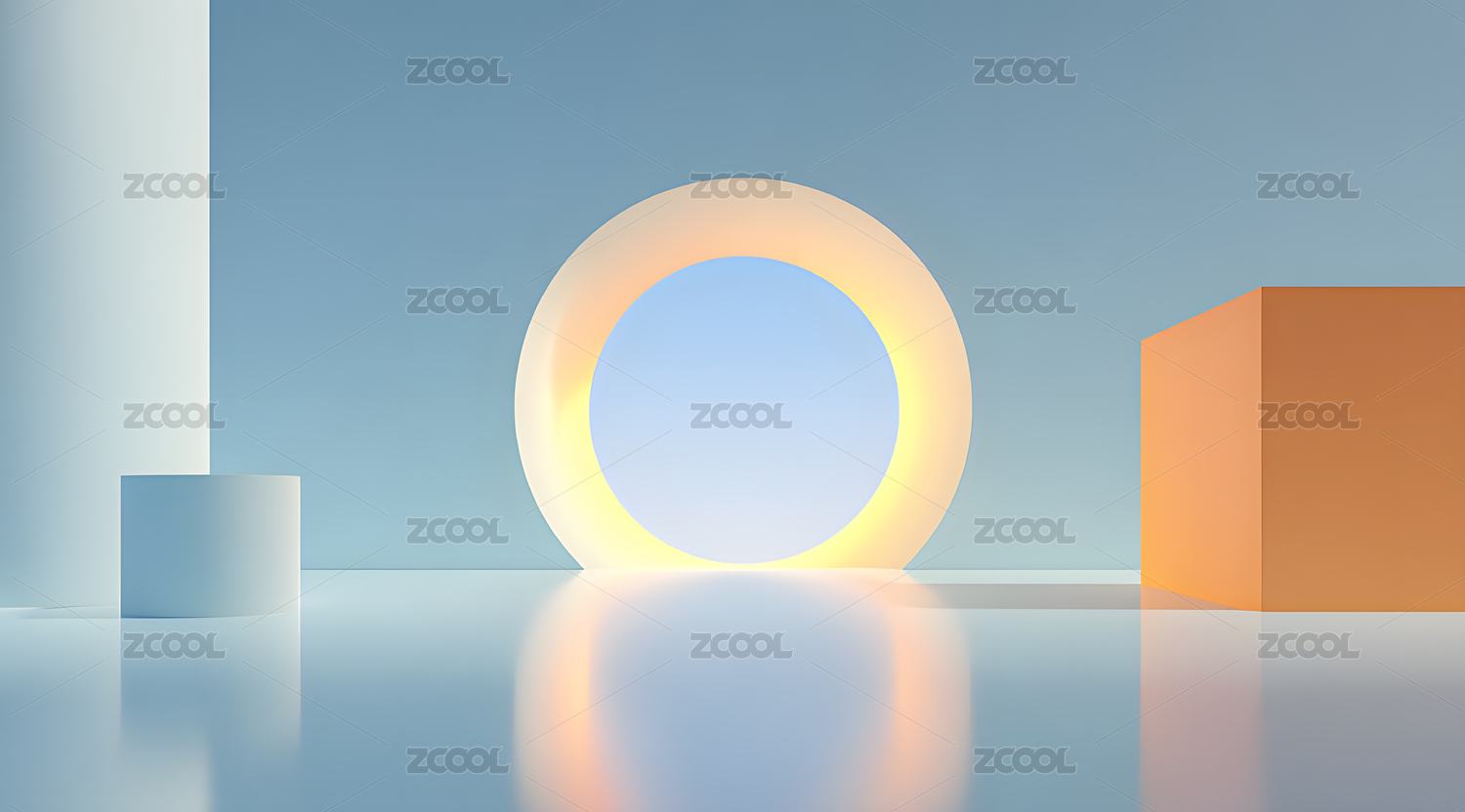 空间,光影,现代,对称,抽象,设计,平台,立方体,圆形,渐变
