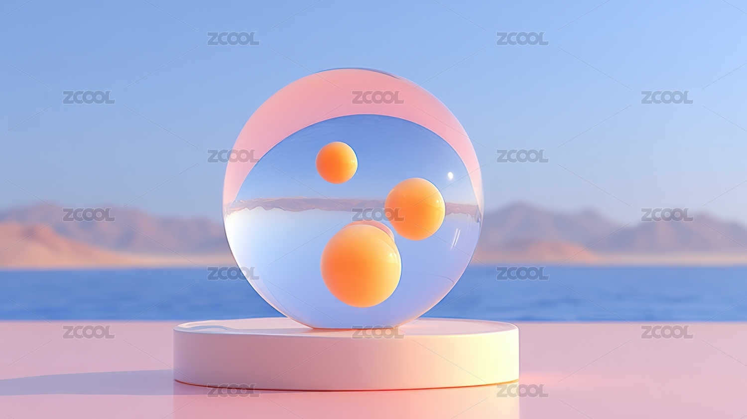 海上浮台与透明球体