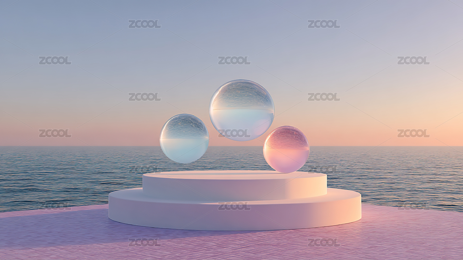 漂浮气泡与圆形平台的梦幻场景