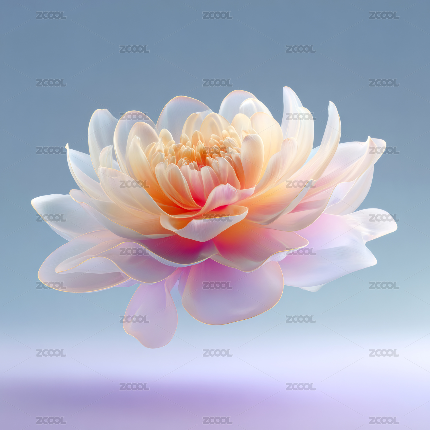 梦幻莲花绽放于蓝光之中