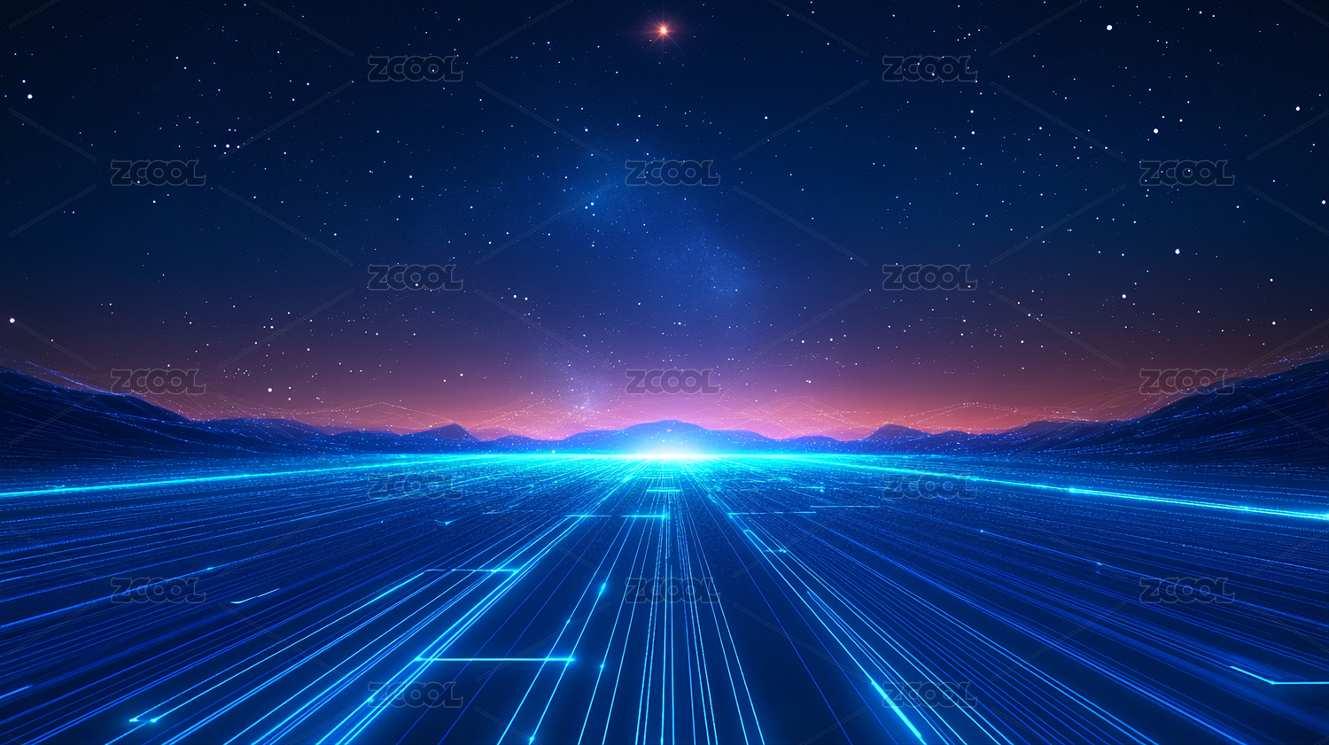 星空下的蓝色线条科技道路