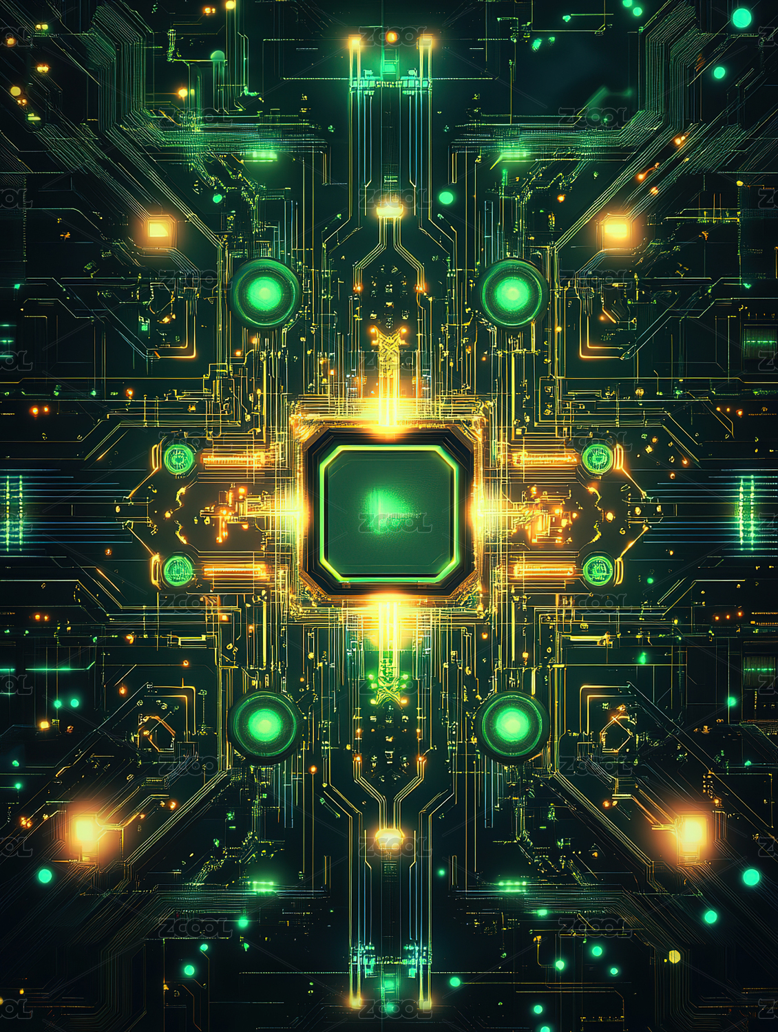 人工智能ai微芯片、发光电路板芯片特写