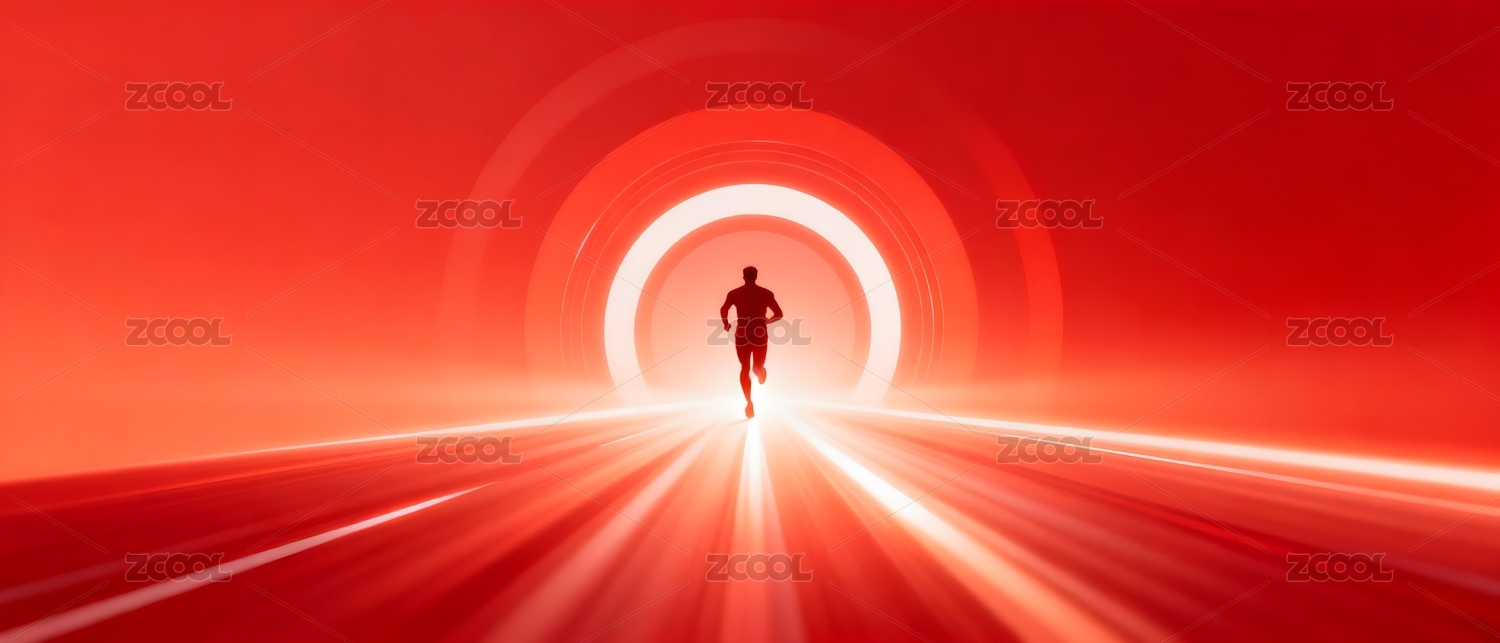 红色光隧道中奔跑的人影