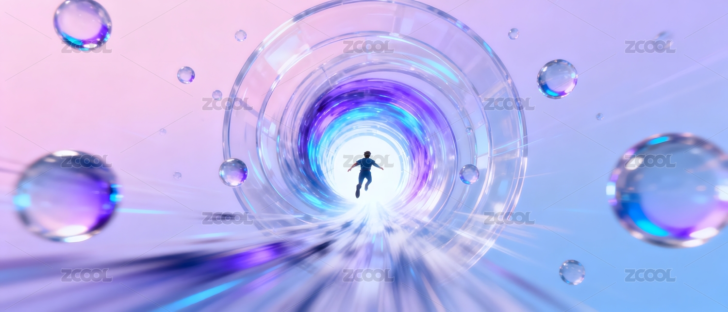 宇宙隧道中奔跑的人影剪影