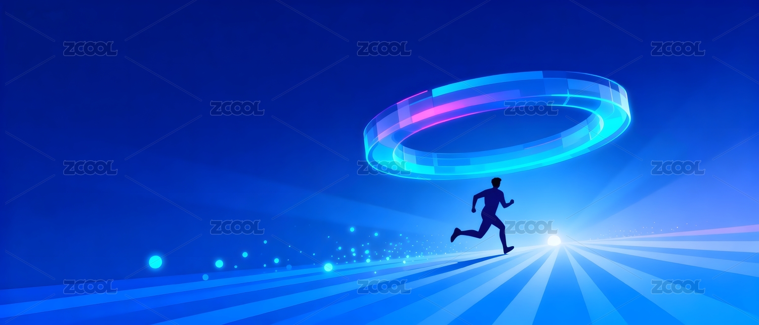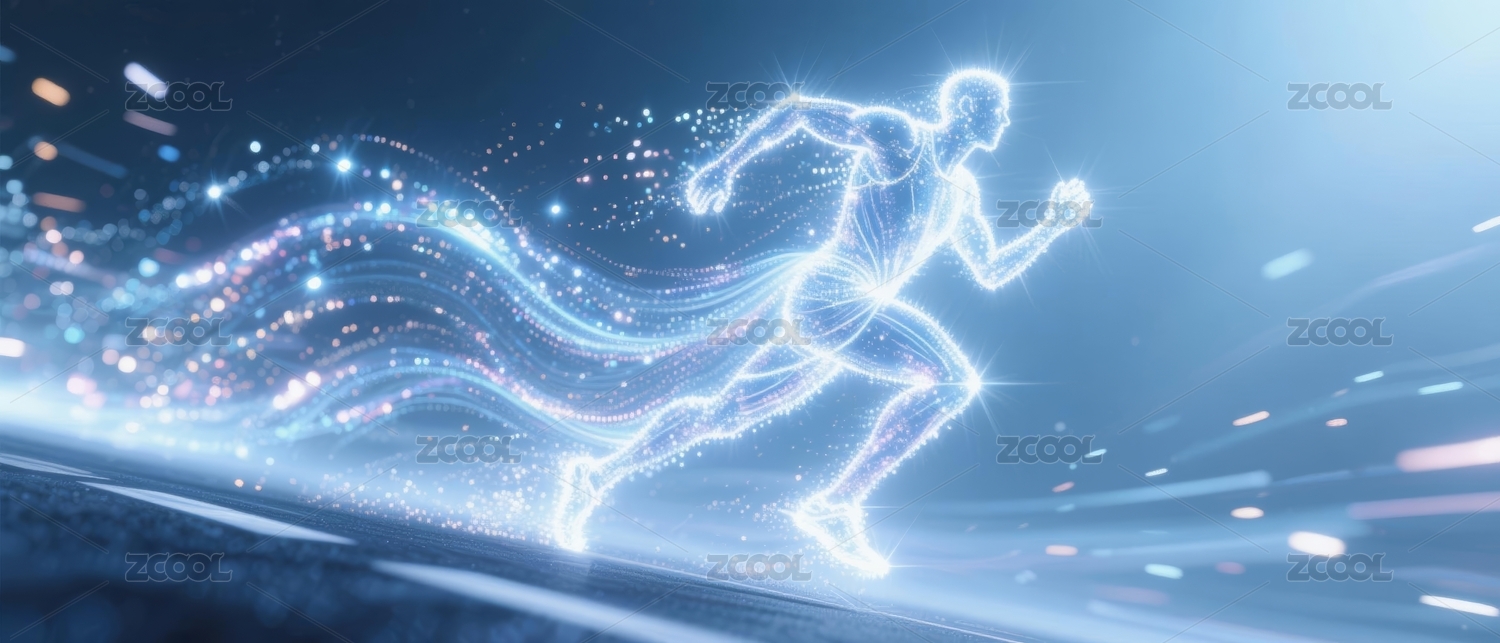 奔跑者剪影与科技光效背景