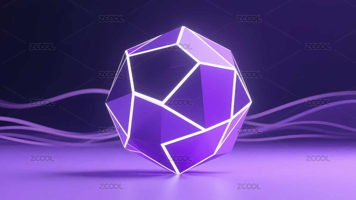 紫色几何体与深蓝波浪背景