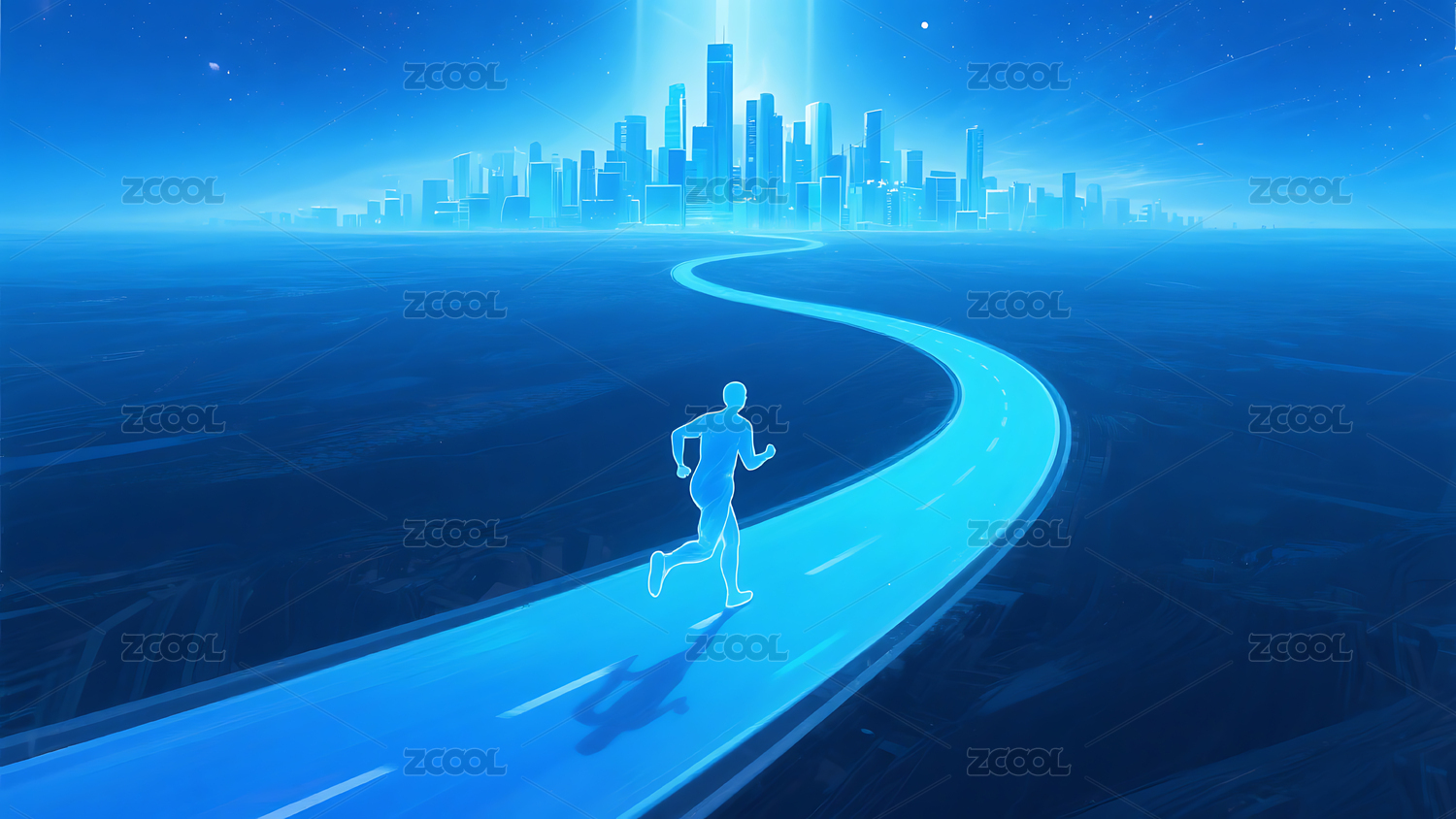 霓虹光轨下奔跑的人群与悬浮城市球体