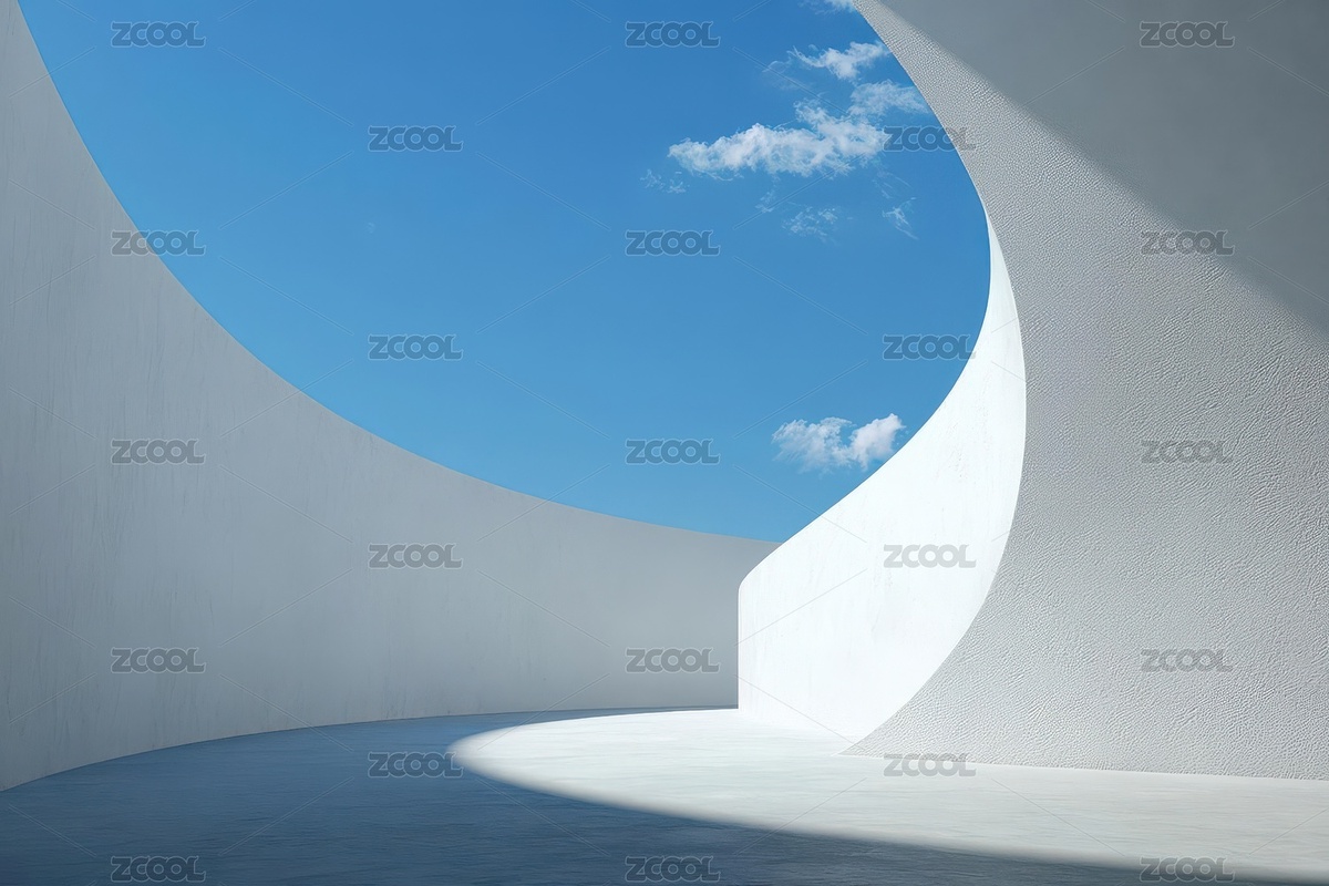 光影,几何,现代,白色,空间,天空,云朵,简约,弧形,建筑