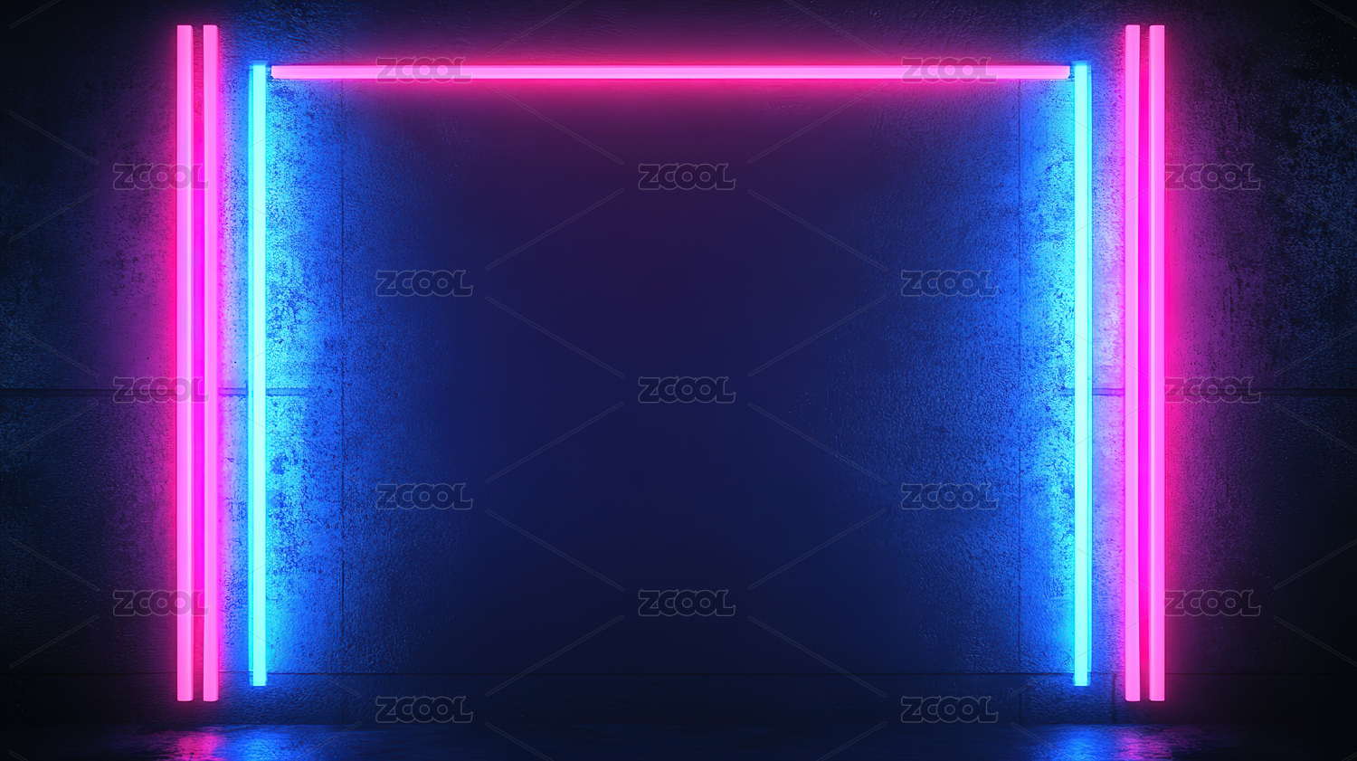 霓虹灯框映照的未来感门洞空间