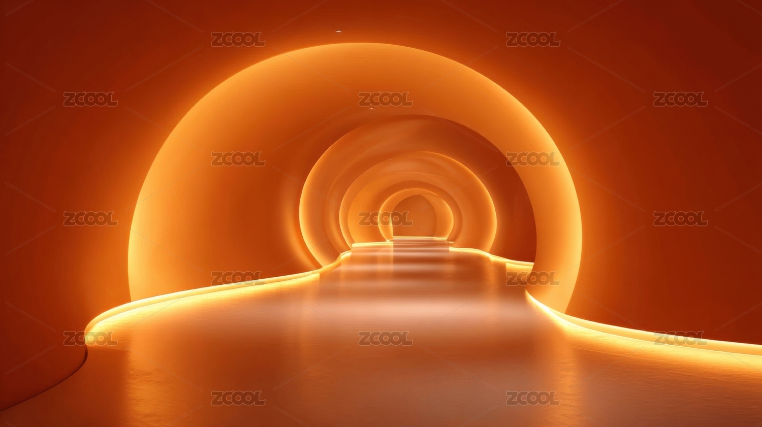 橙色光弧隧道通向明亮未来