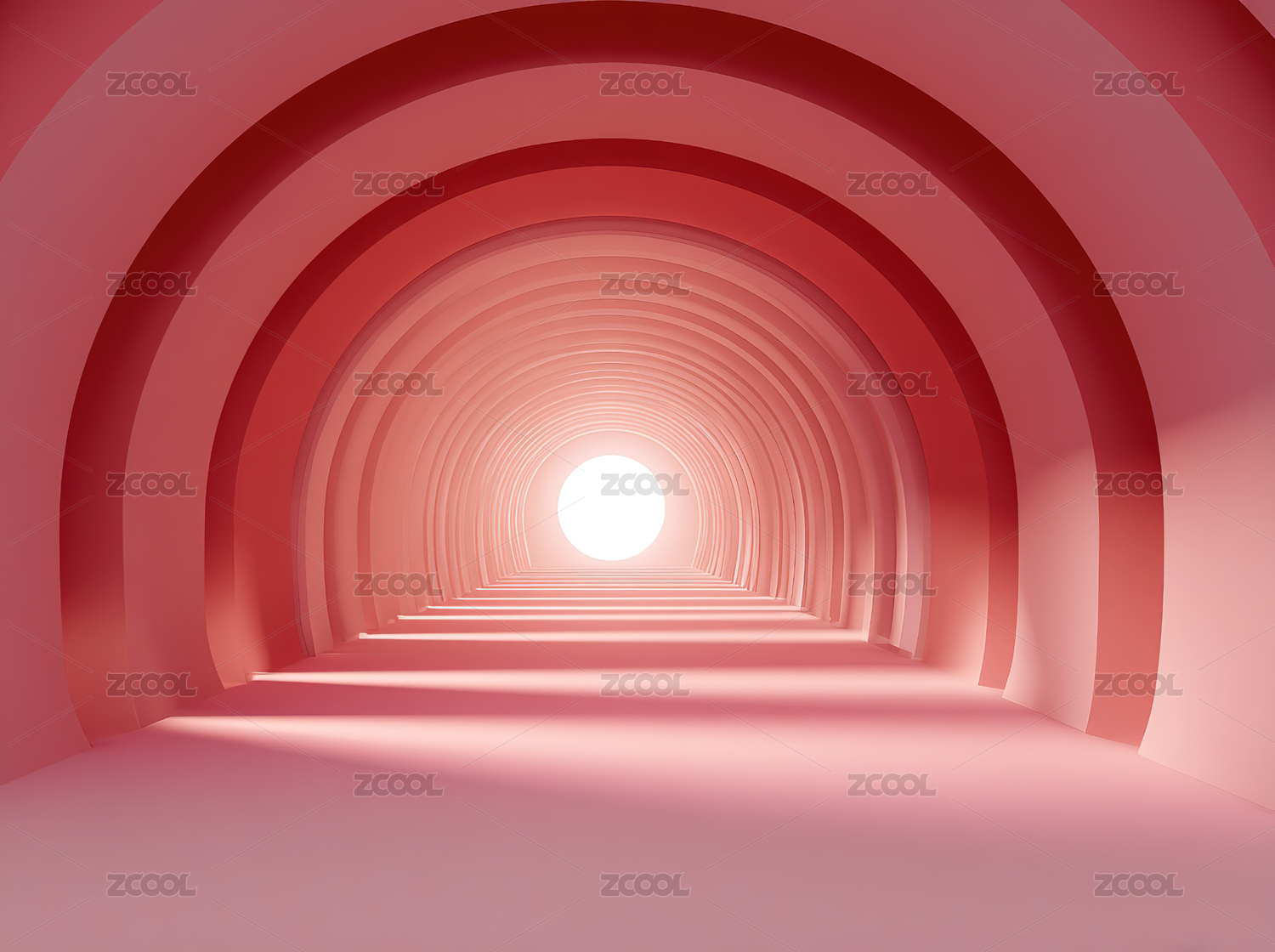 粉红色拱形隧道尽头透出光芒
