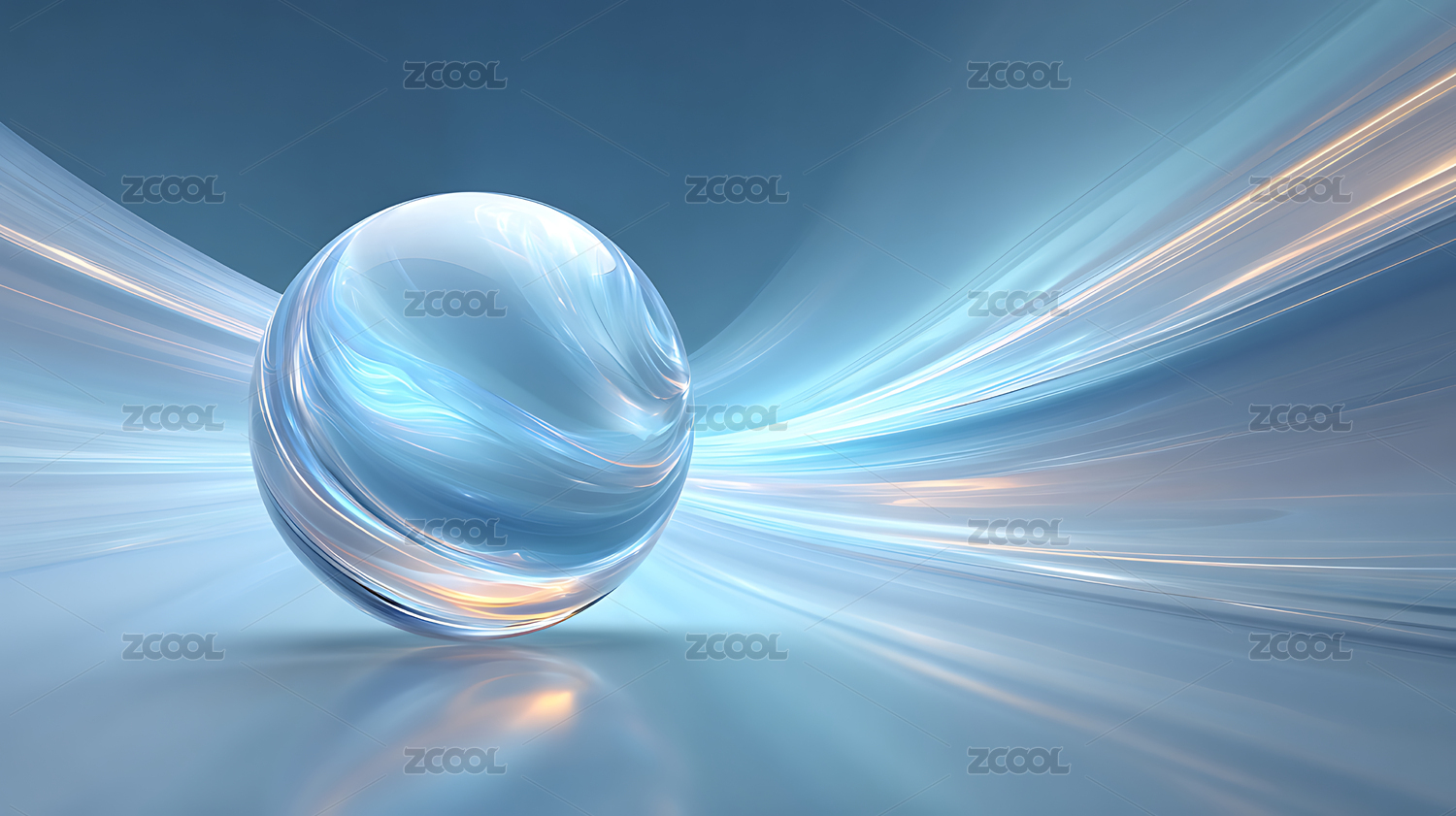 蓝色,科技,透明,悬浮,光影,球体,流动,光带,旋转,抽象