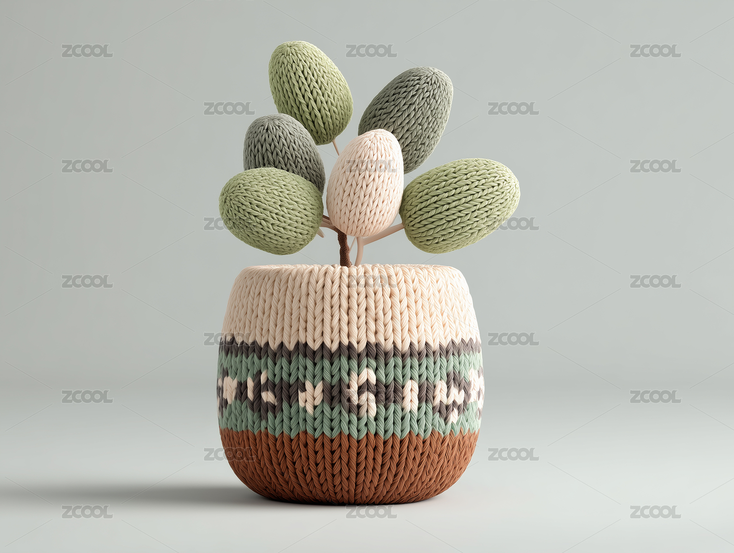 抱盆花穿彩色毛衣的粘土女孩子3D卡通人物