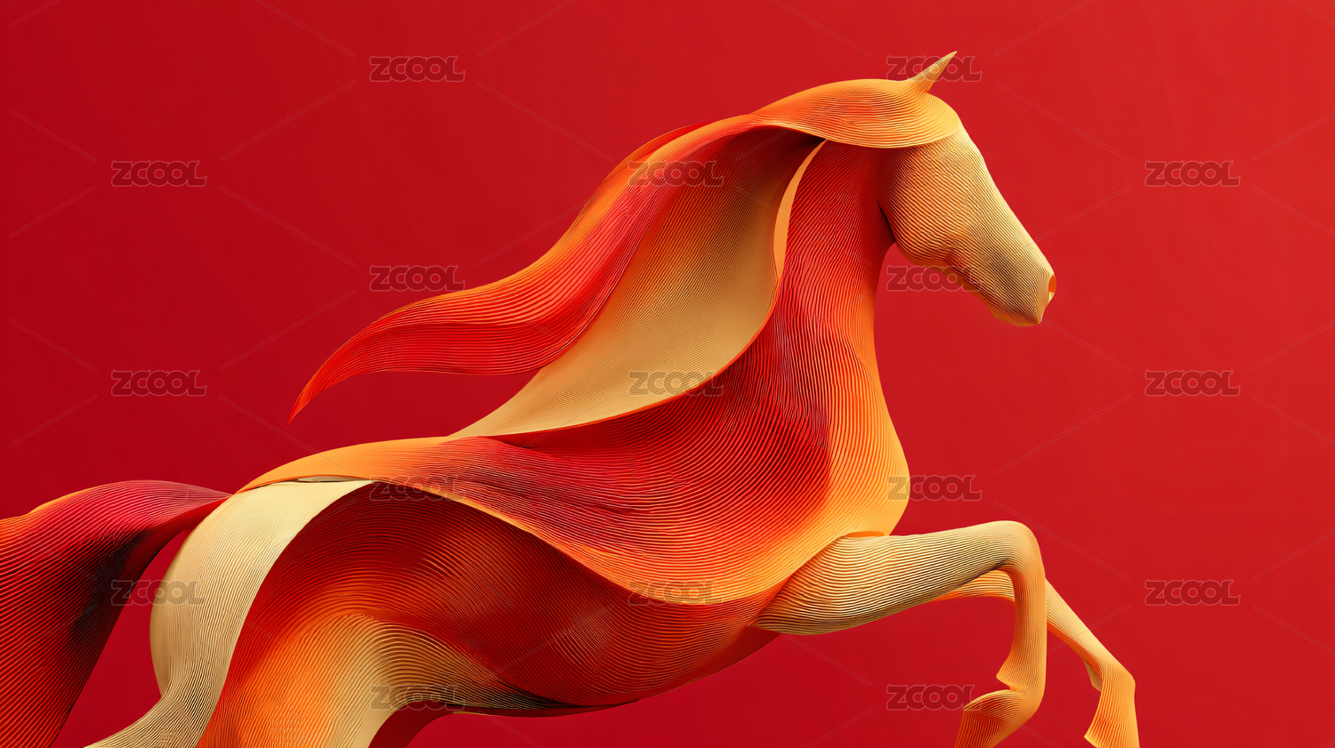 晶莹,透明,红色,黄色,火红,华丽,彩色,鬃毛,奔马,金色