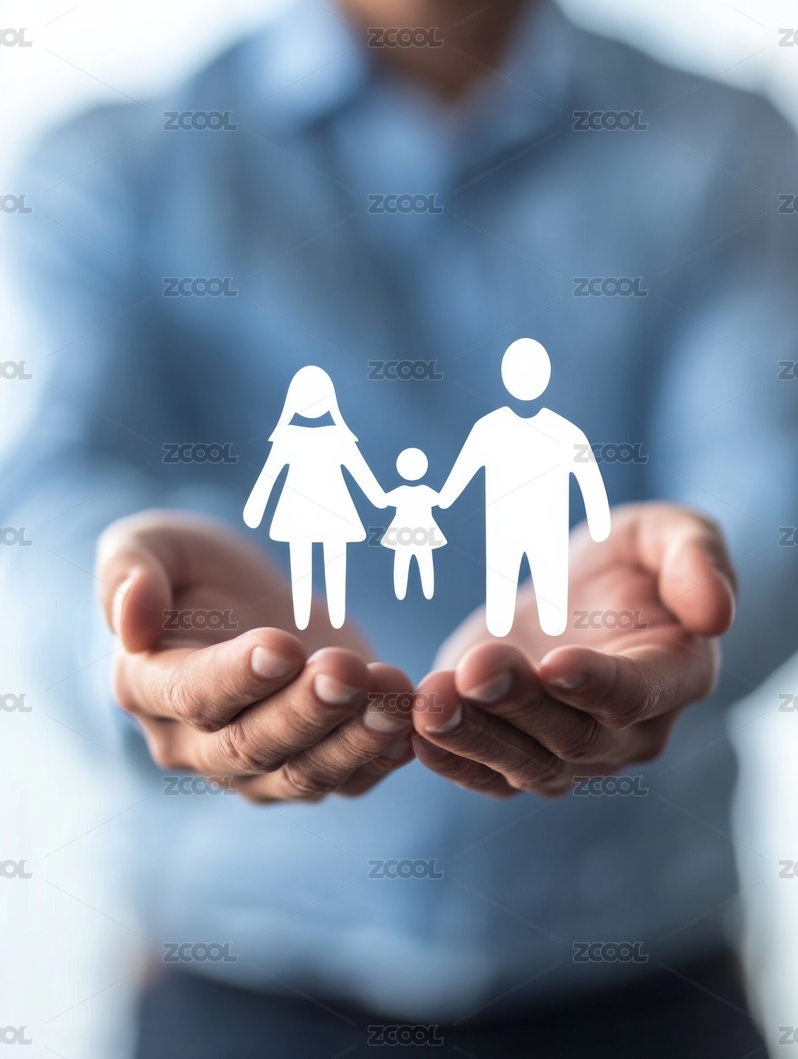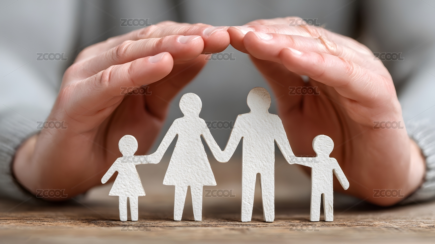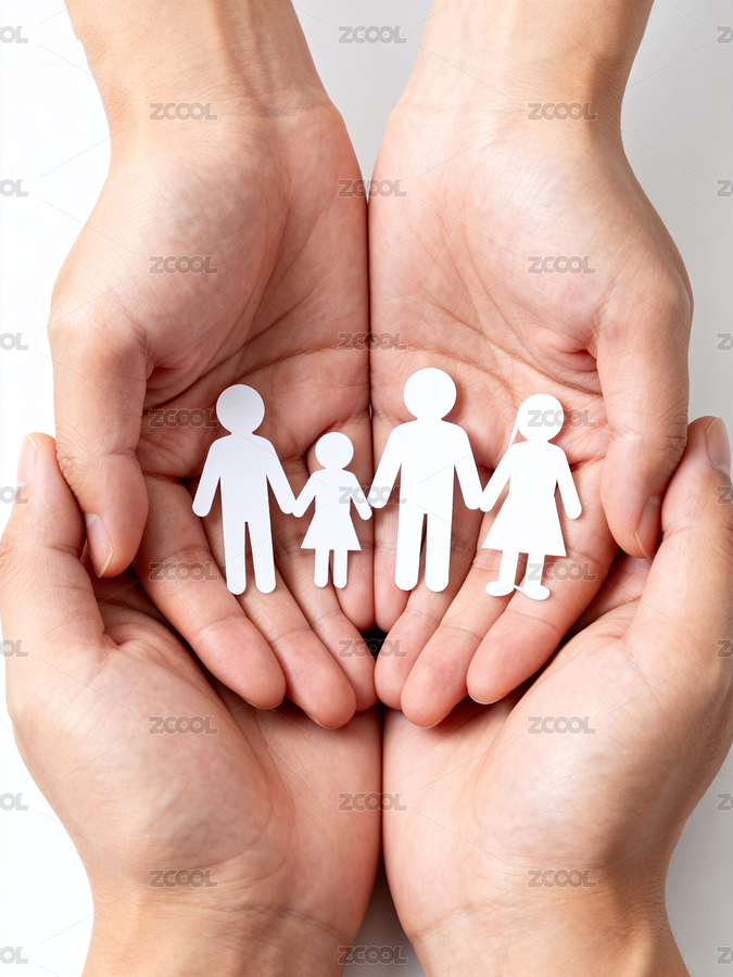 小人手拉手和谐理解稳定家庭关系医疗保险教育概念
