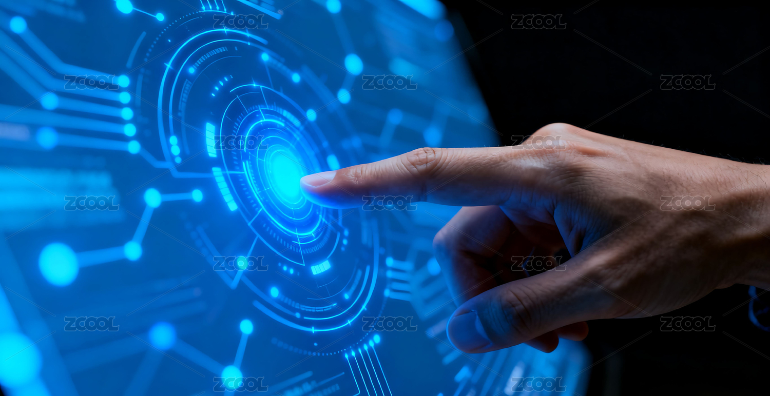 手指触碰蓝色科技界面