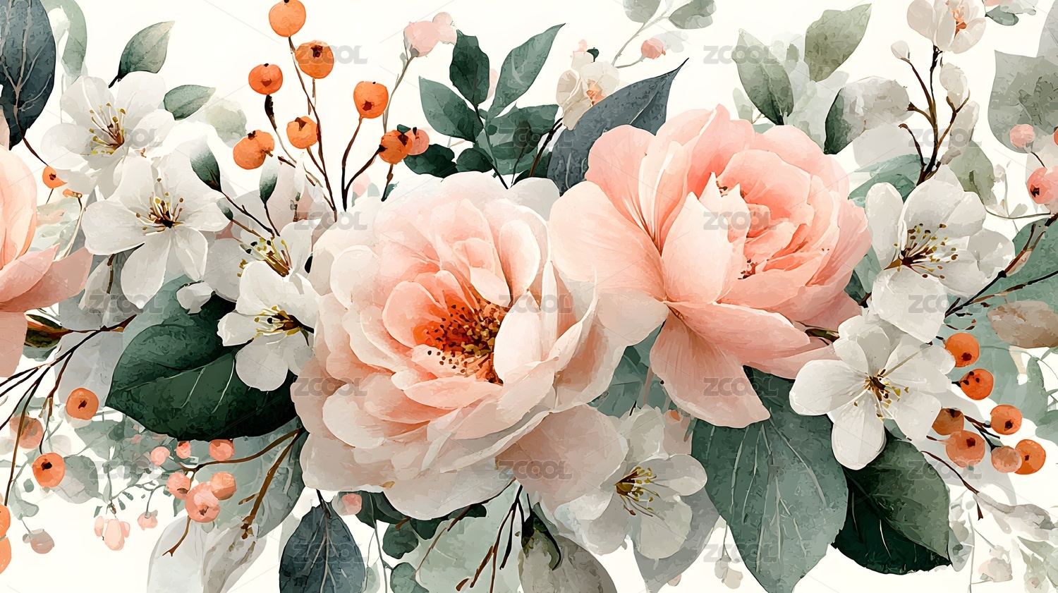 花瓣,黄色,花蕊,绿色,自然,背景,细节,色彩,水彩,牡丹